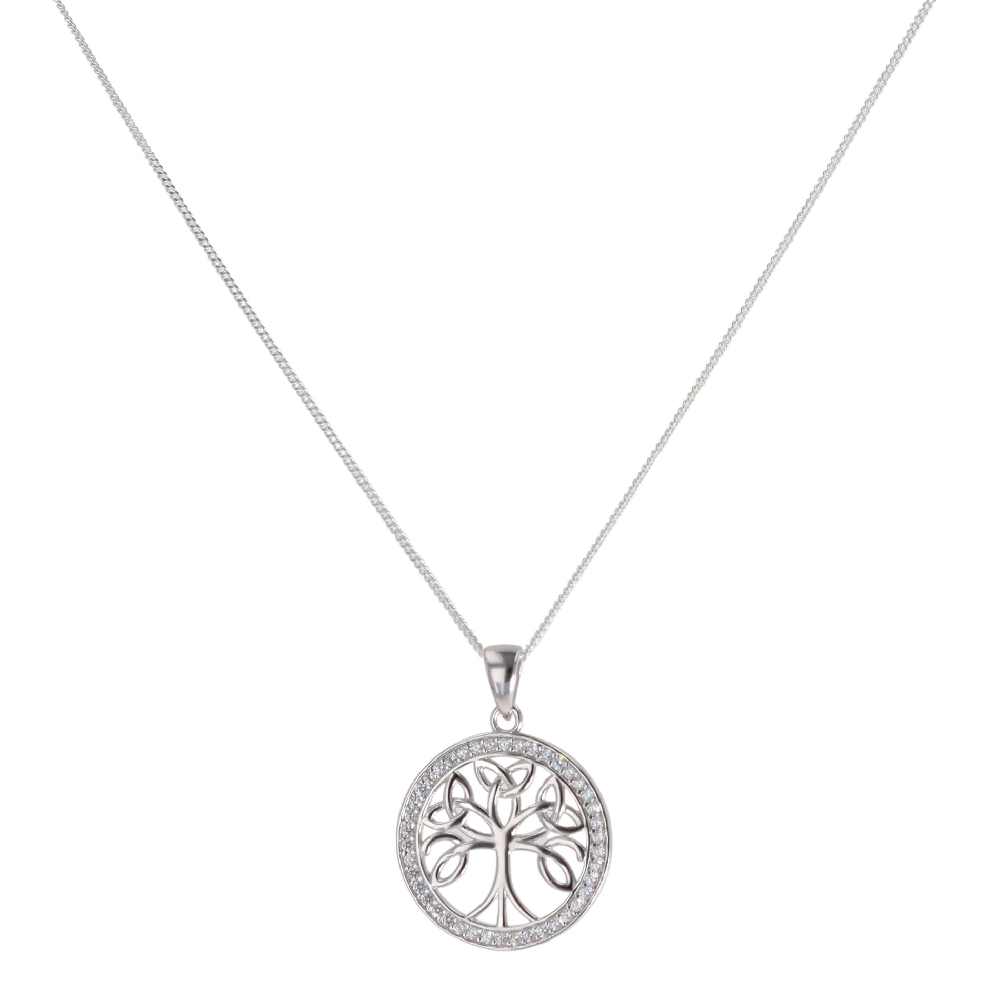 Silver Cubic Zirconia Tree of Life Pendant And Chain 18" By Icesia