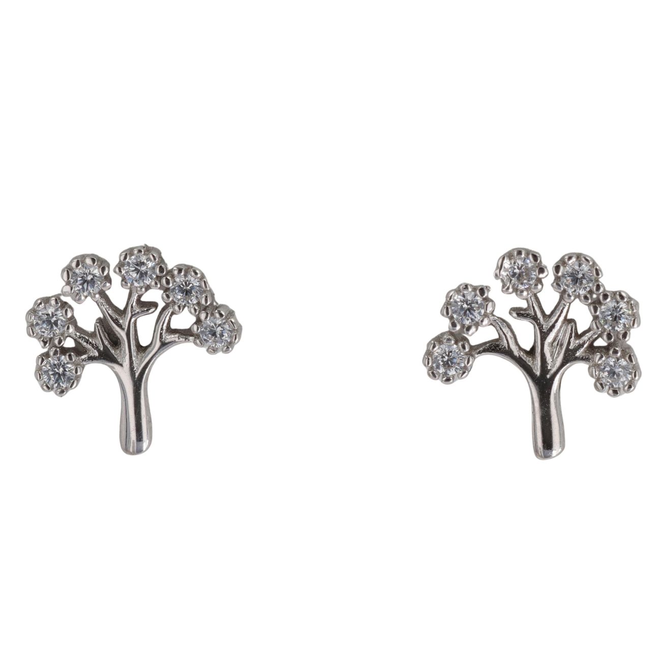 Silver Cubic Zirconia Tree Of Life Stud Earrings By Icesia