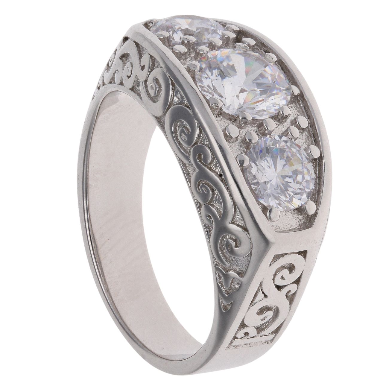 Silver Cubic Zirconia Trilogy Ring By Icesia Gents