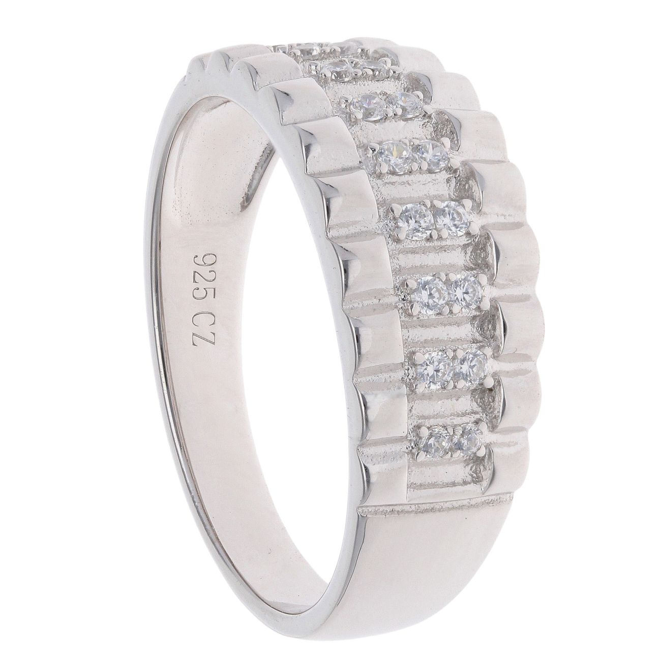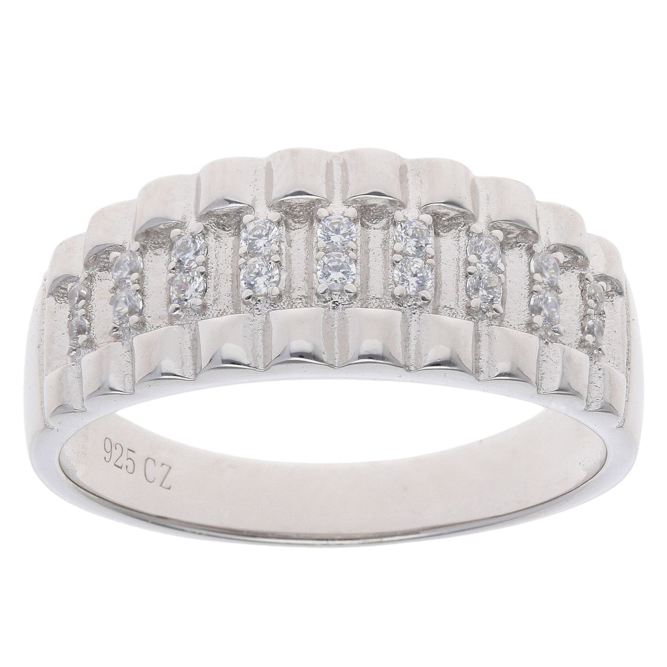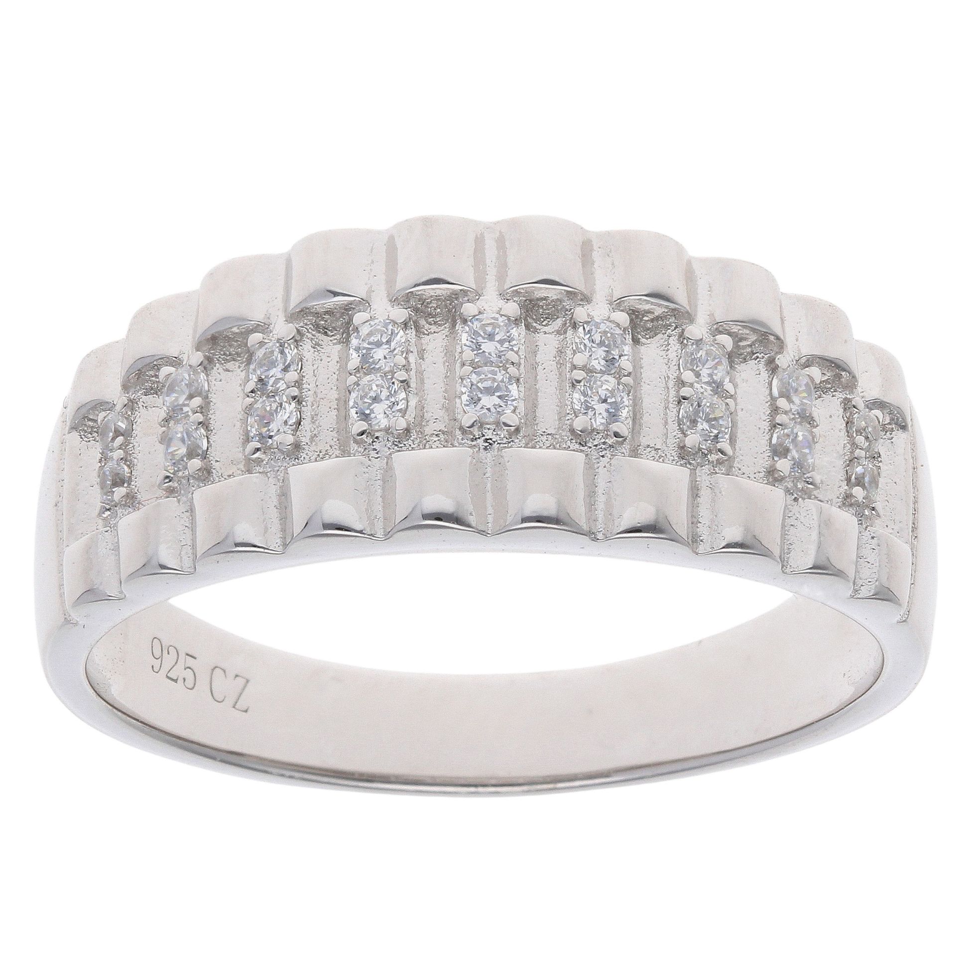 Silver Cubic Zirconia Watch Strap Style Ring By Icesia Gents