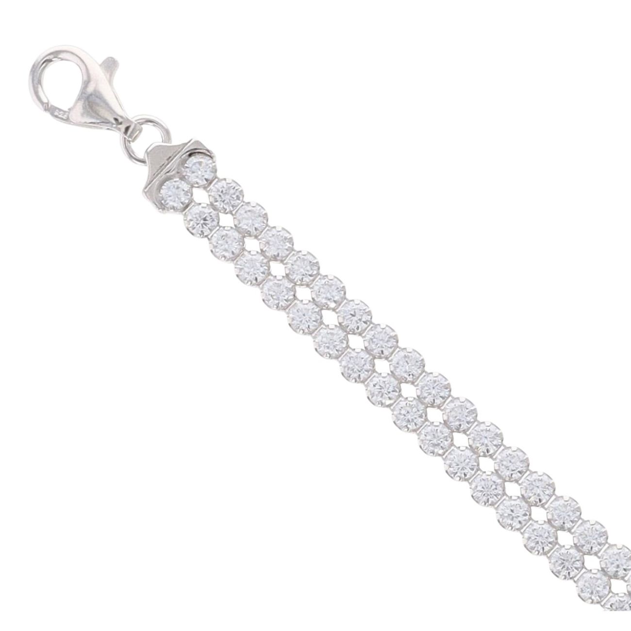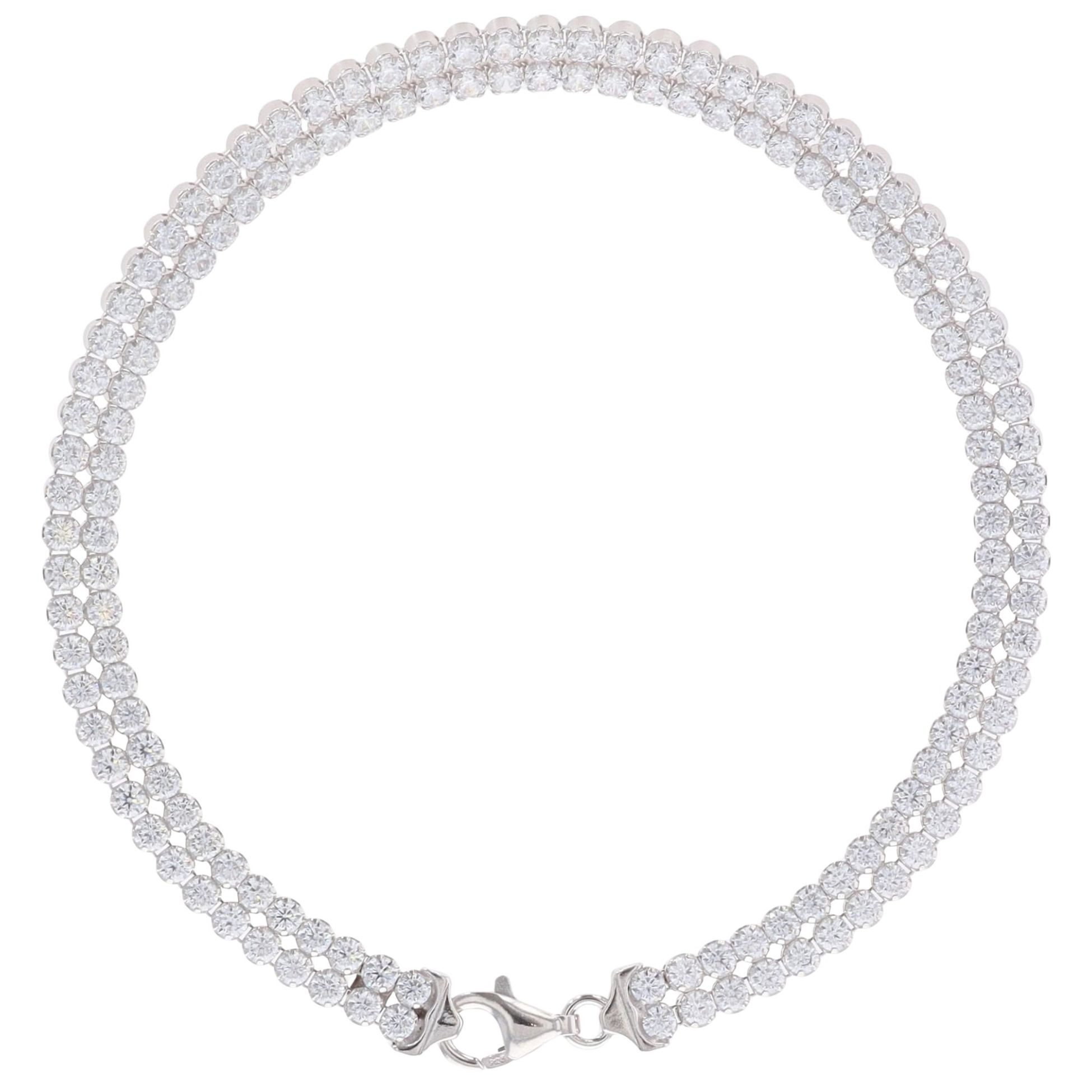 Silver Duo Cubic Zirconia Tennis Bracelet 7.5" By Icesia