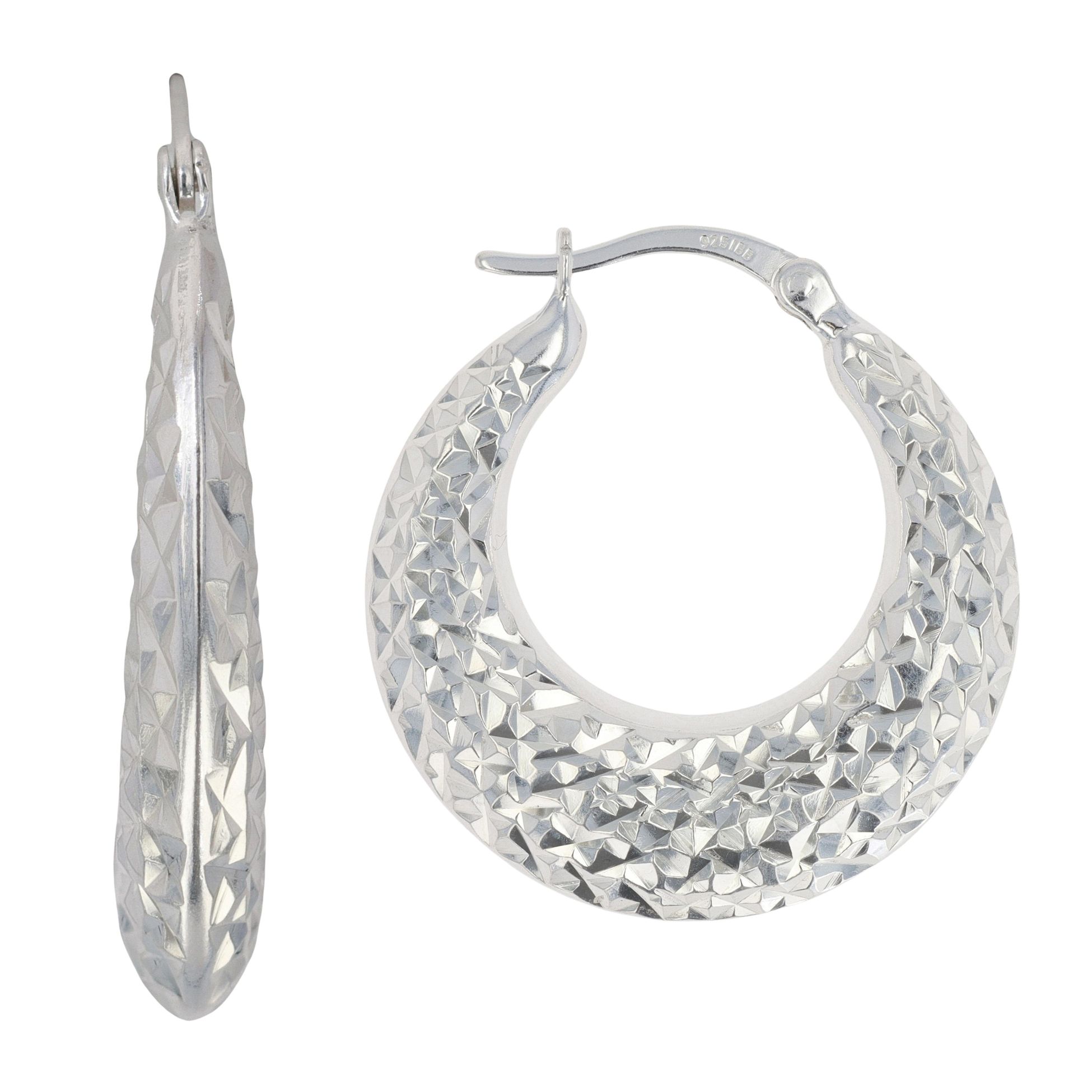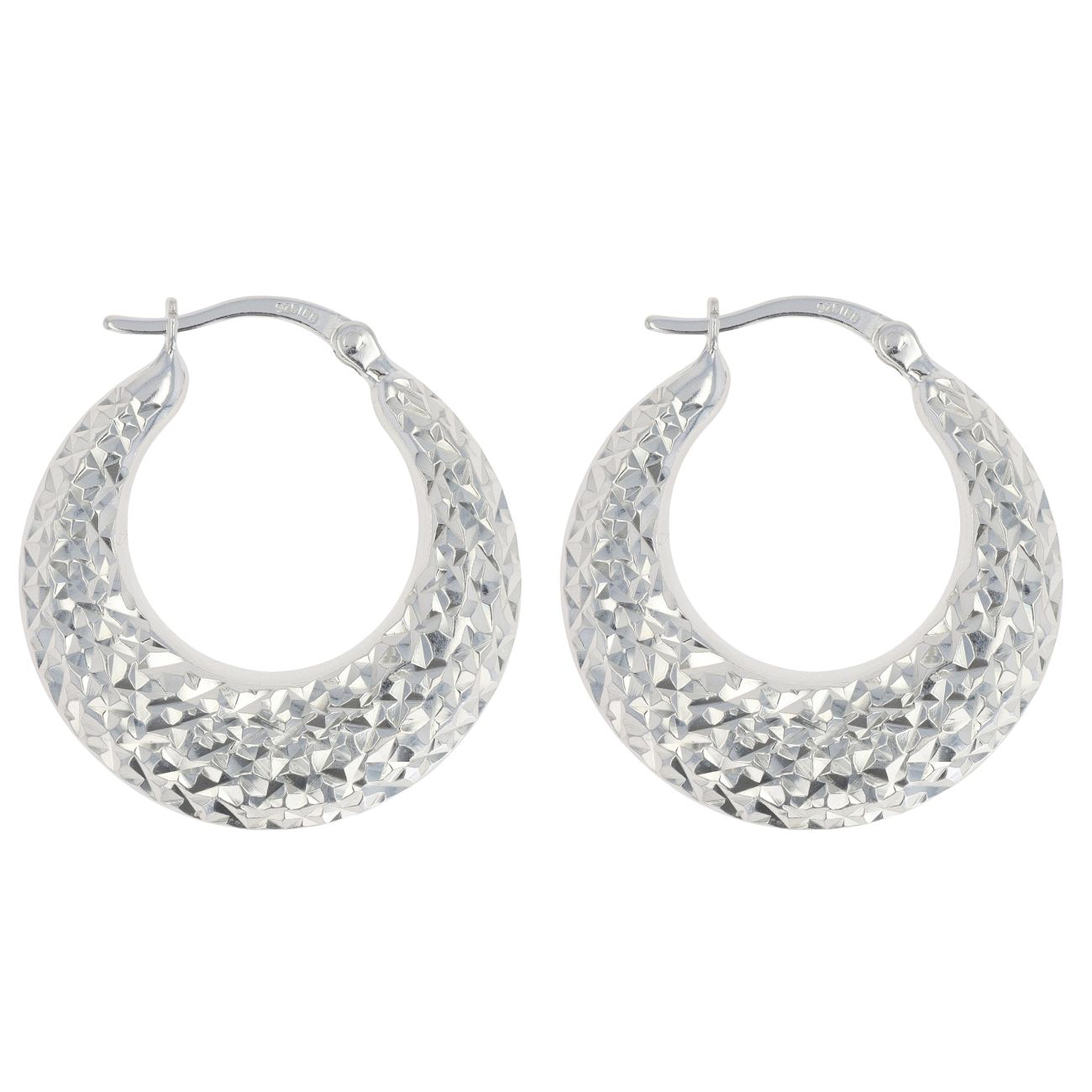 Silver Faceted Patterned Hoop Earrings by Icesia