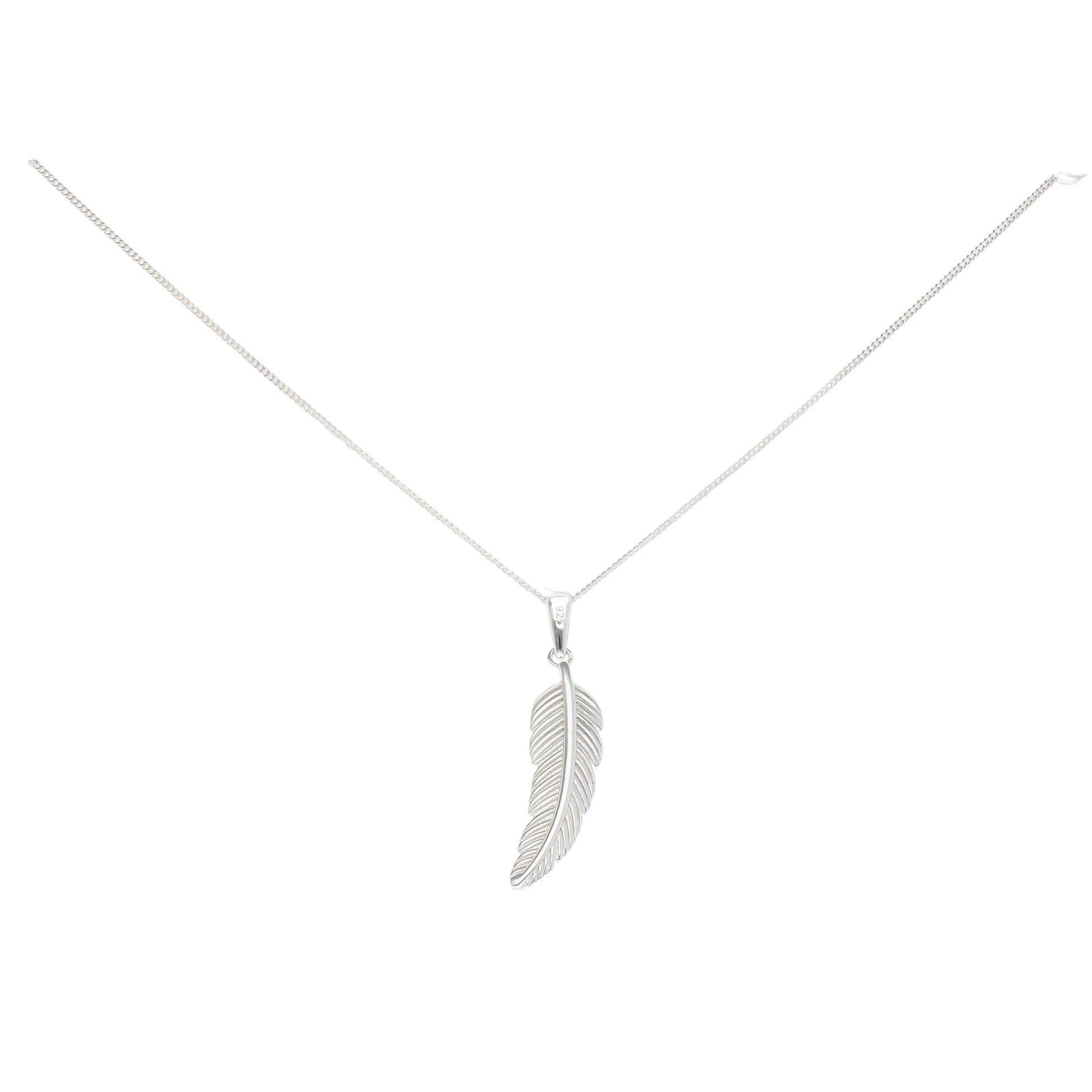 Silver Feather Pendant and Chain 18