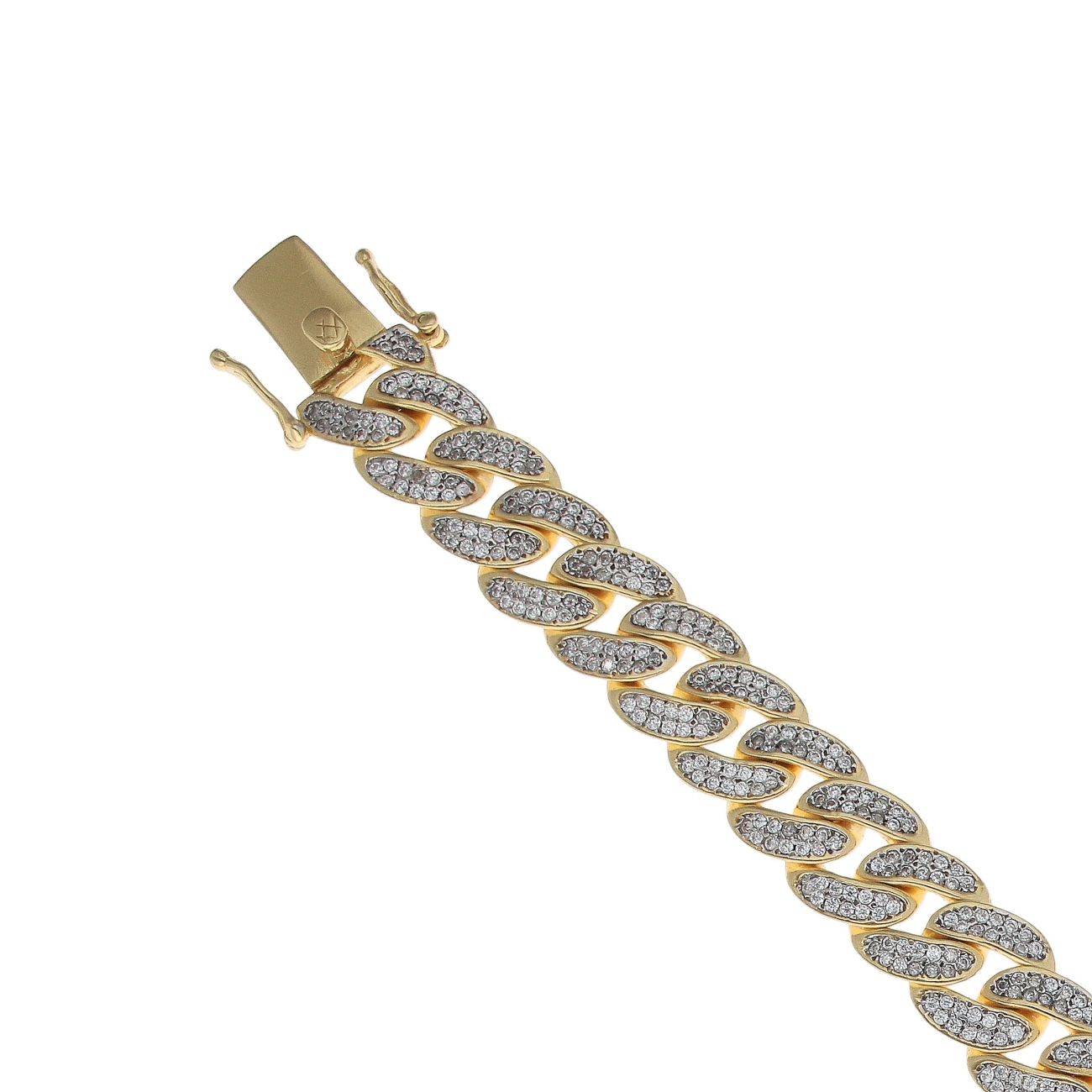 Silver Gold Plated Cubic Zirconia Cuban Bracelet 8.5"