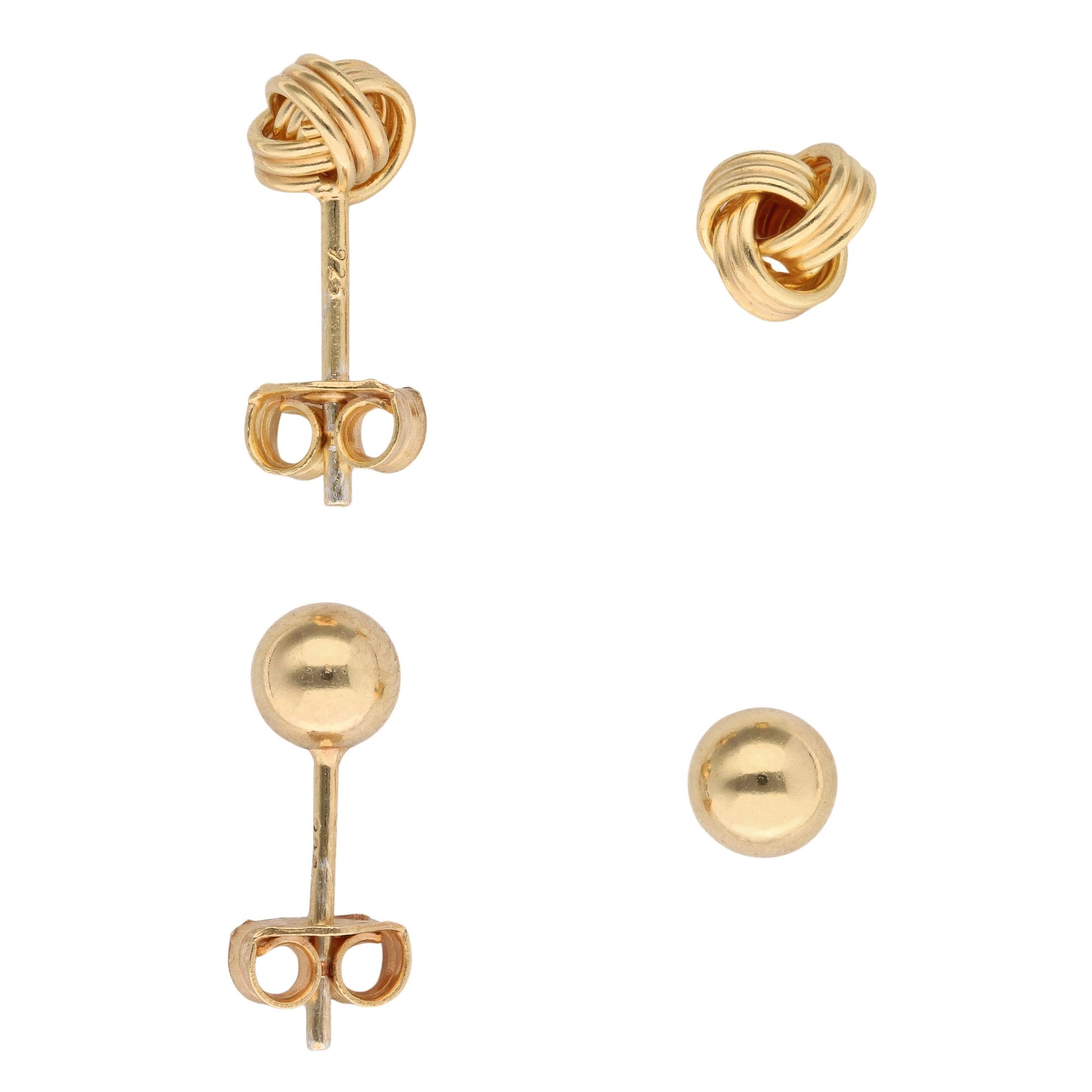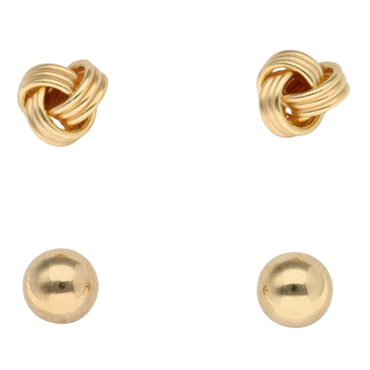 Silver Gold Plated Knot and Ball Stud Earrings Set of Two