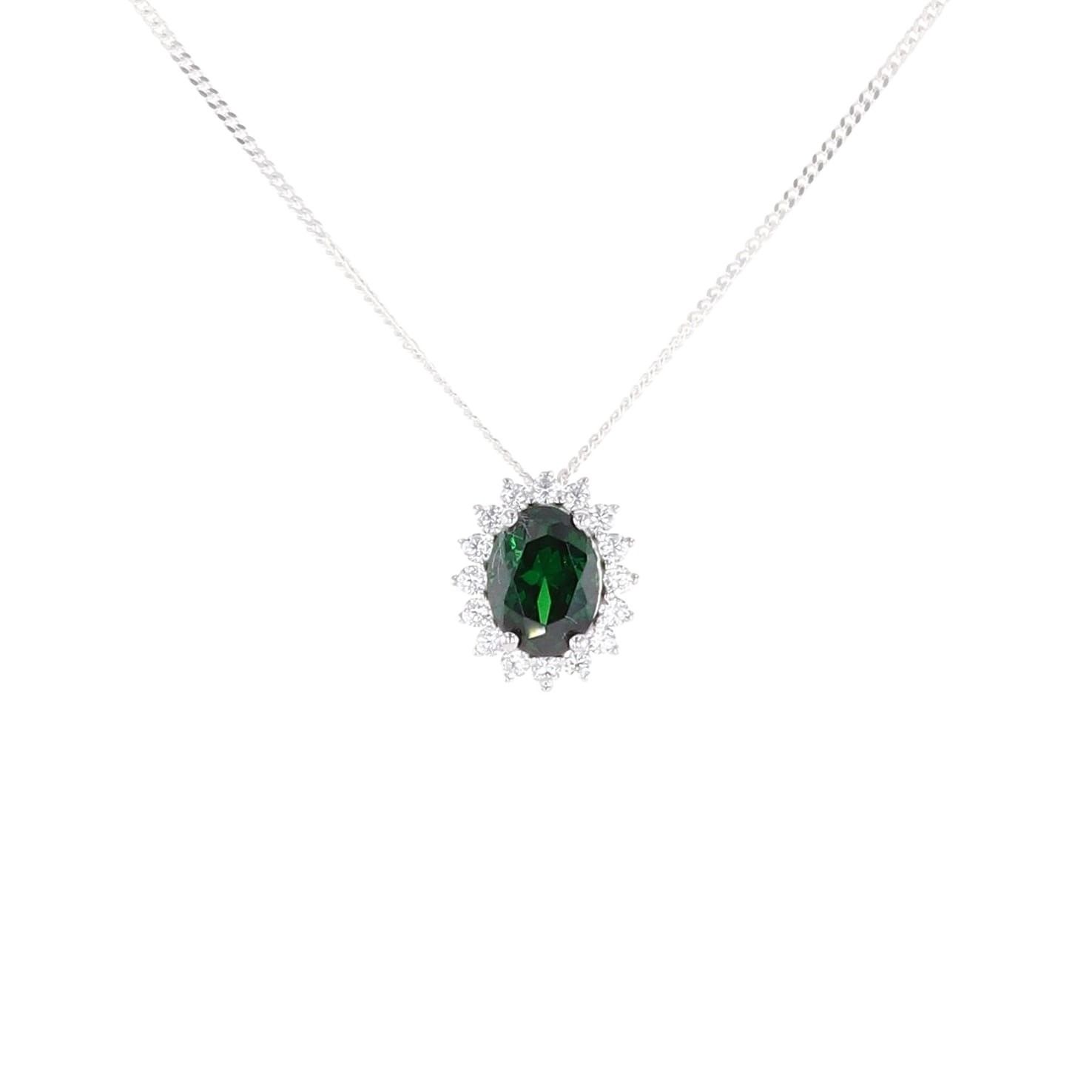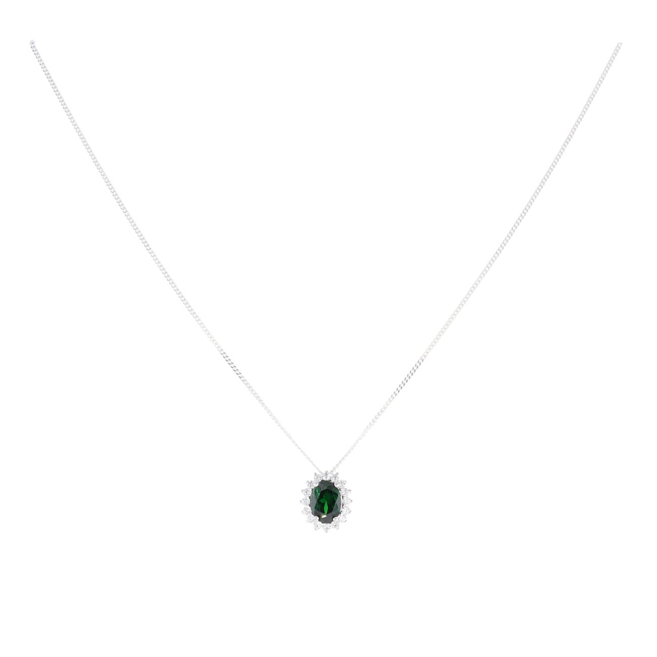 Silver Green Gemstone And Cubic Zirconia Cluster Pendant And Chain 18" By Icesia