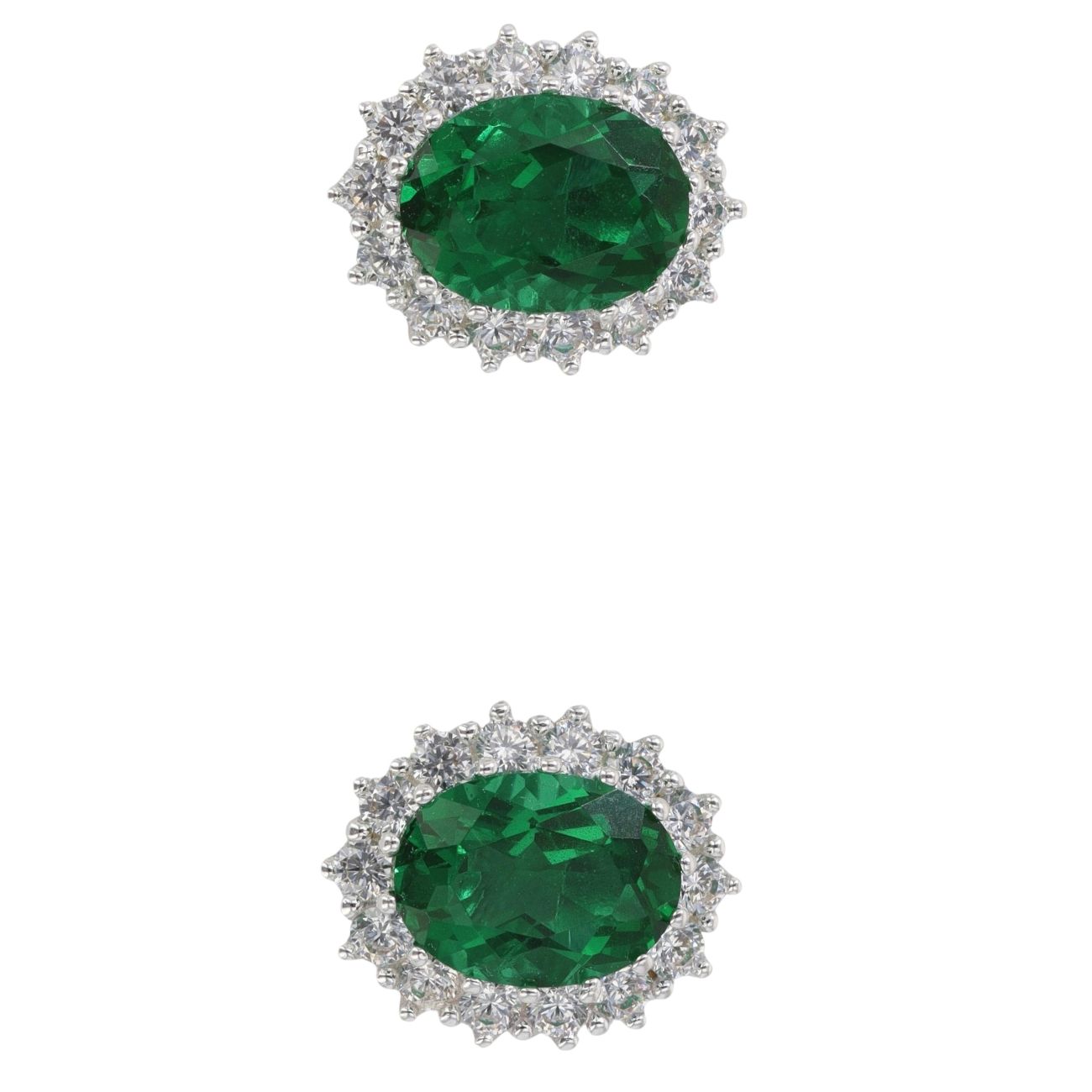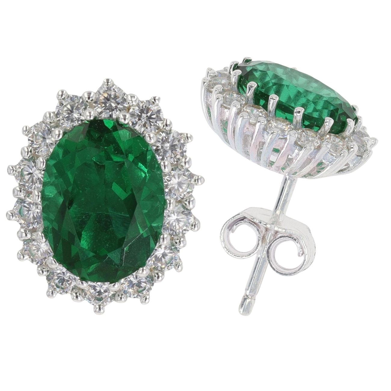 Silver Green Gemstone And Cubic Zirconia Cluster Stud Earrings By Icesia