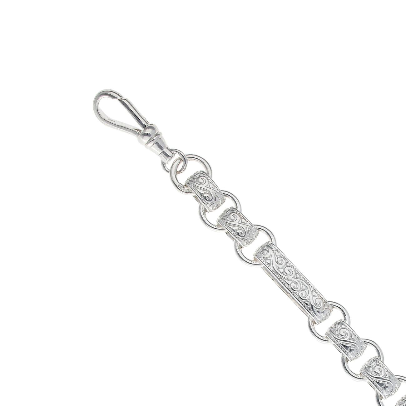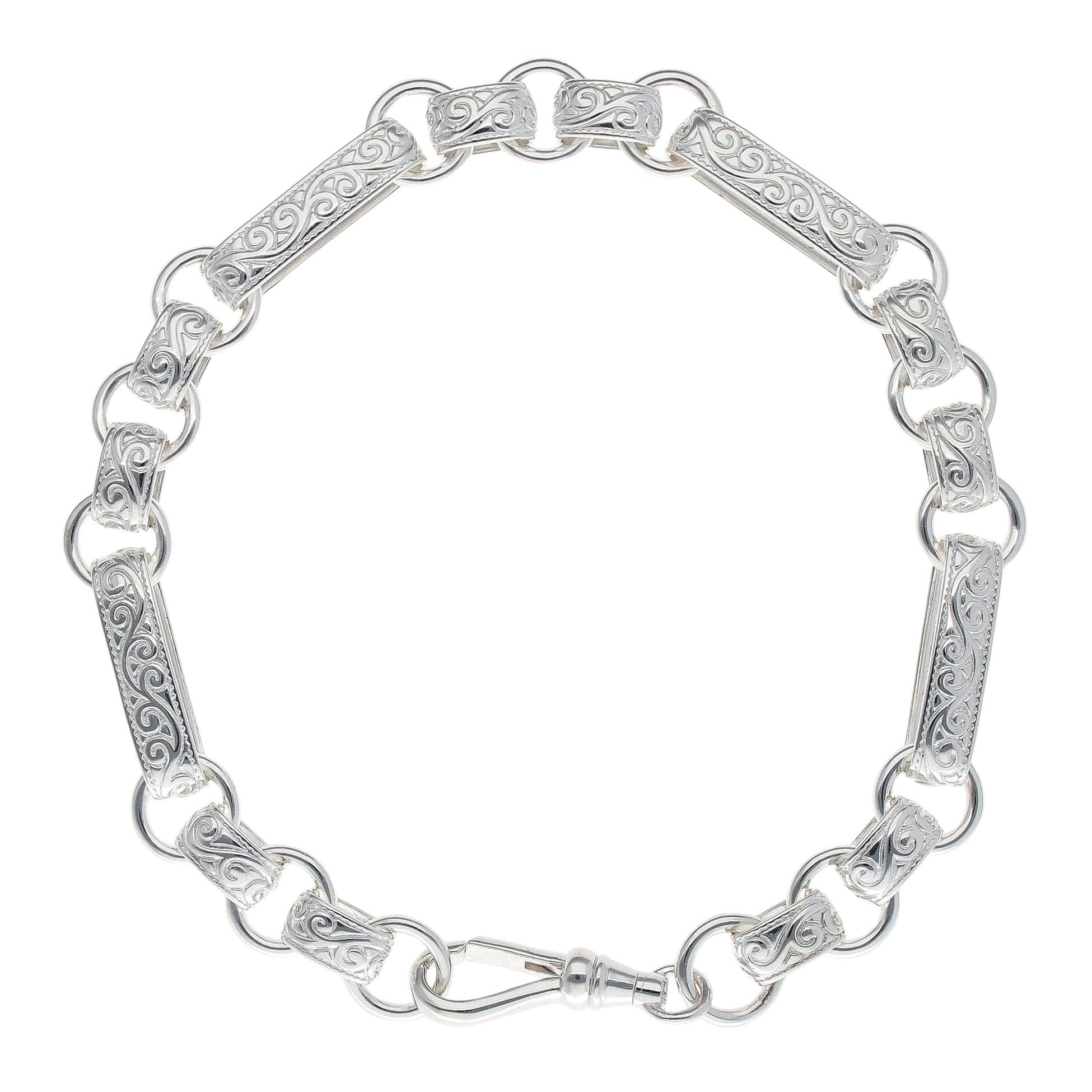 Silver Oval And Rectangular Patterned Belcher Bracelet 9" By Icesia