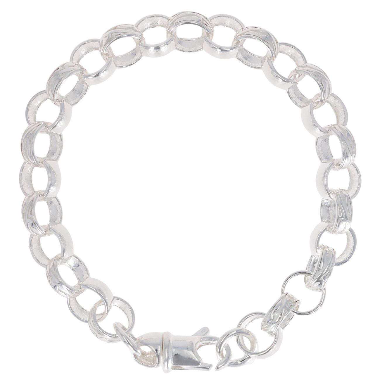 Silver Patterned and Plain Belcher Bracelet 9" By icesia