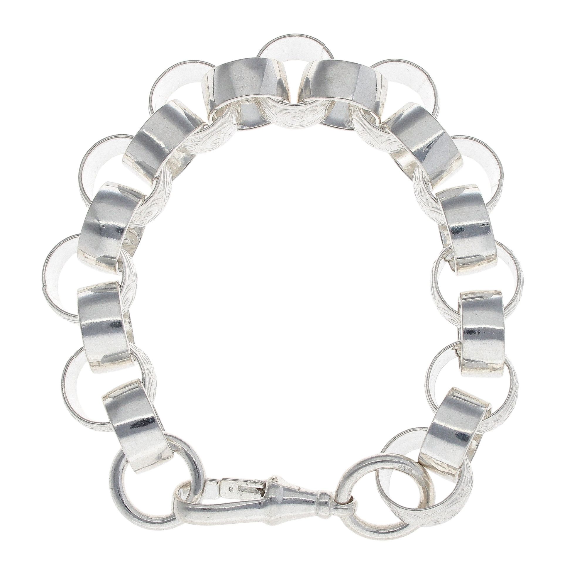 Silver Patterned And Plain Belcher Bracelet 9" By Icesia