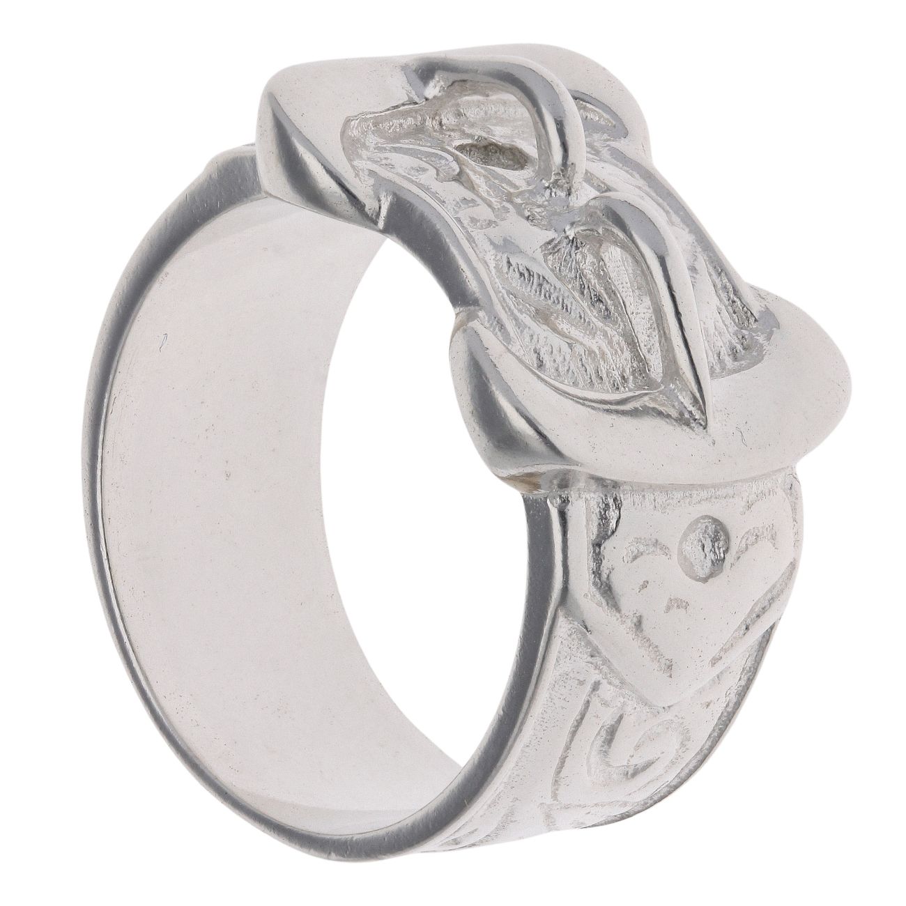 Silver Patterned Double Buckle Ring By Icesia Gents