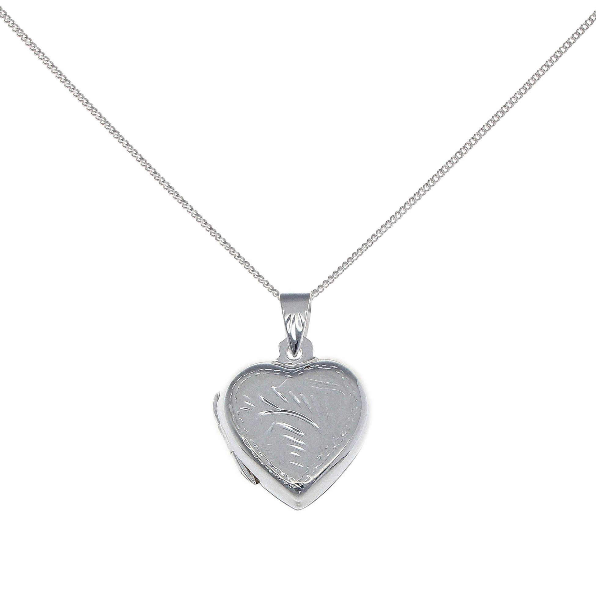 Silver Patterned Heart Pendant And Chain 18" By Icesia