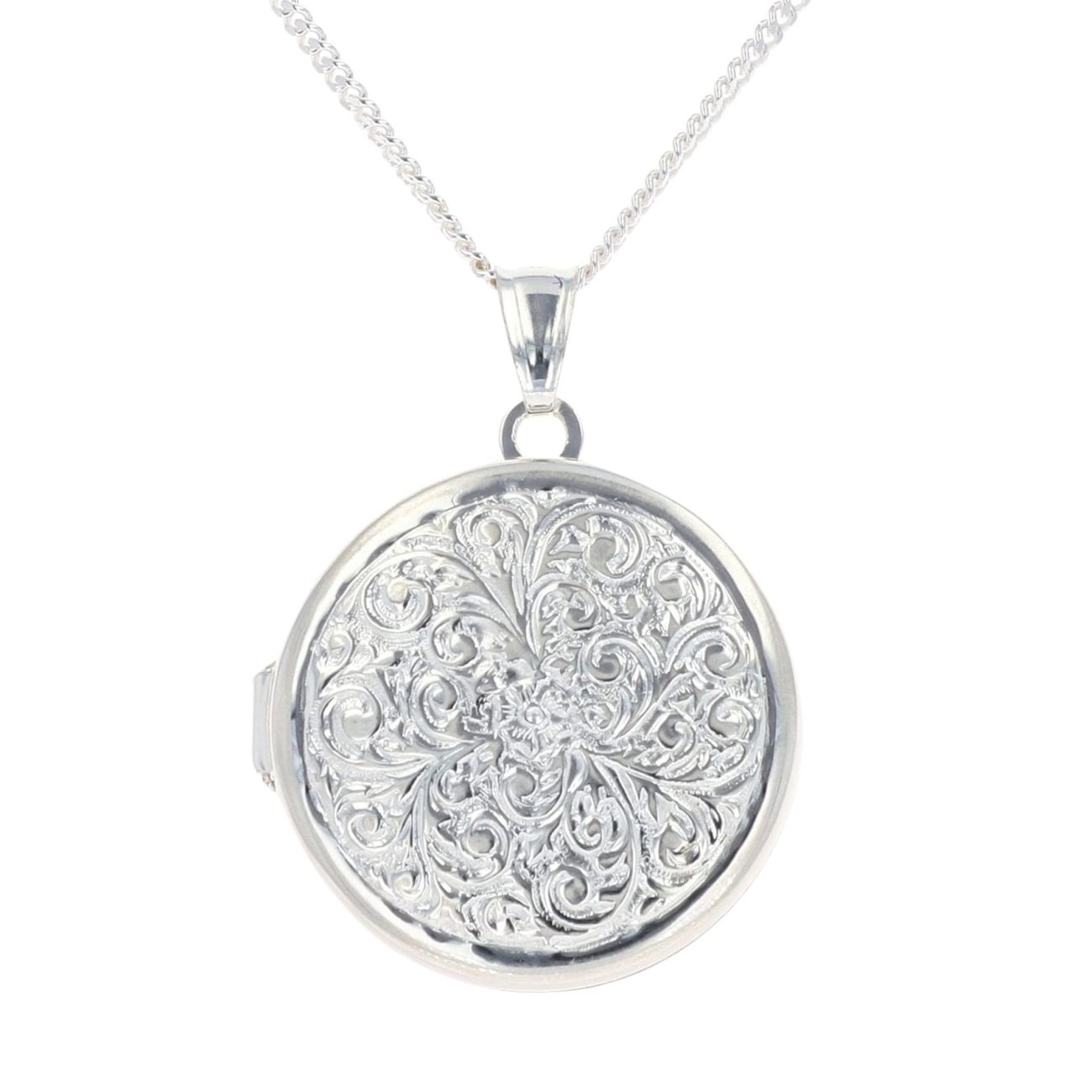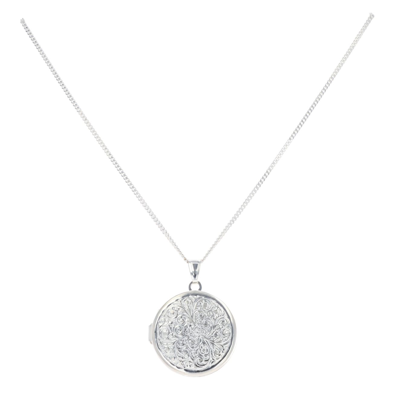 Silver Patterned Locket and Curb Chain 20" by Icesia