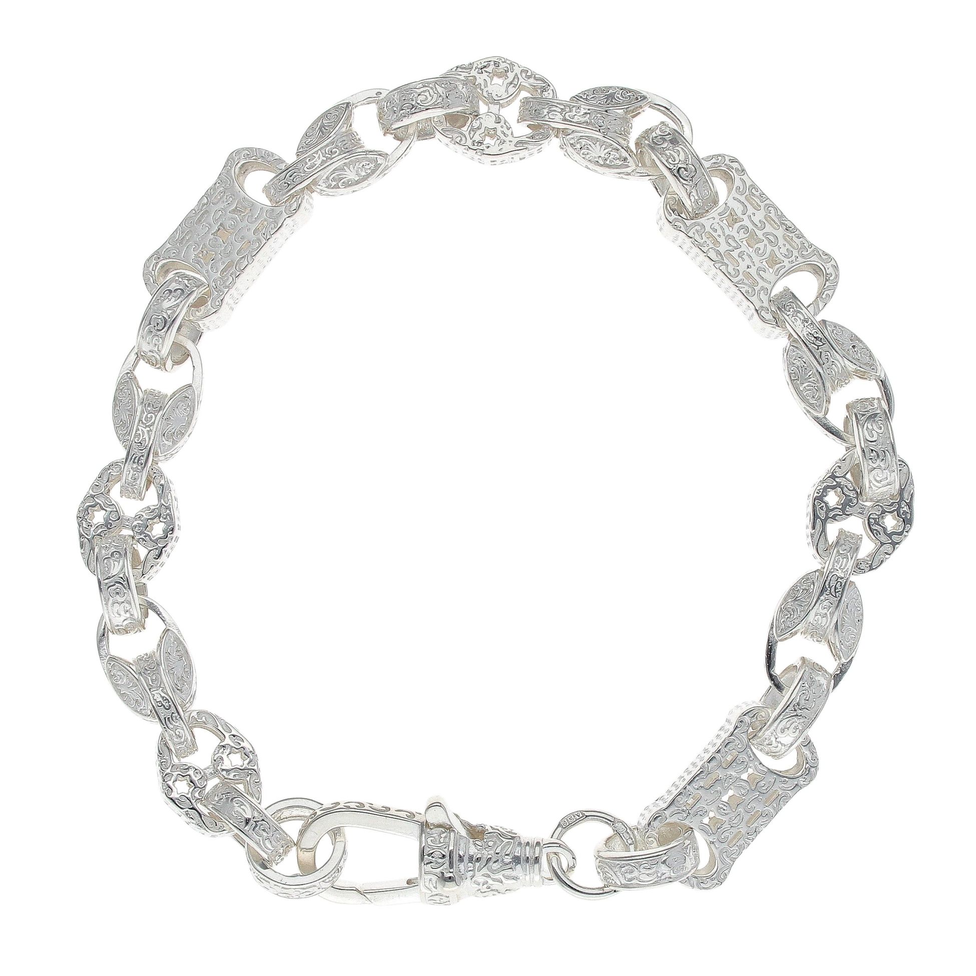 Silver Patterned Stars And Bars And Tulip Bracelet 9" By Icesia