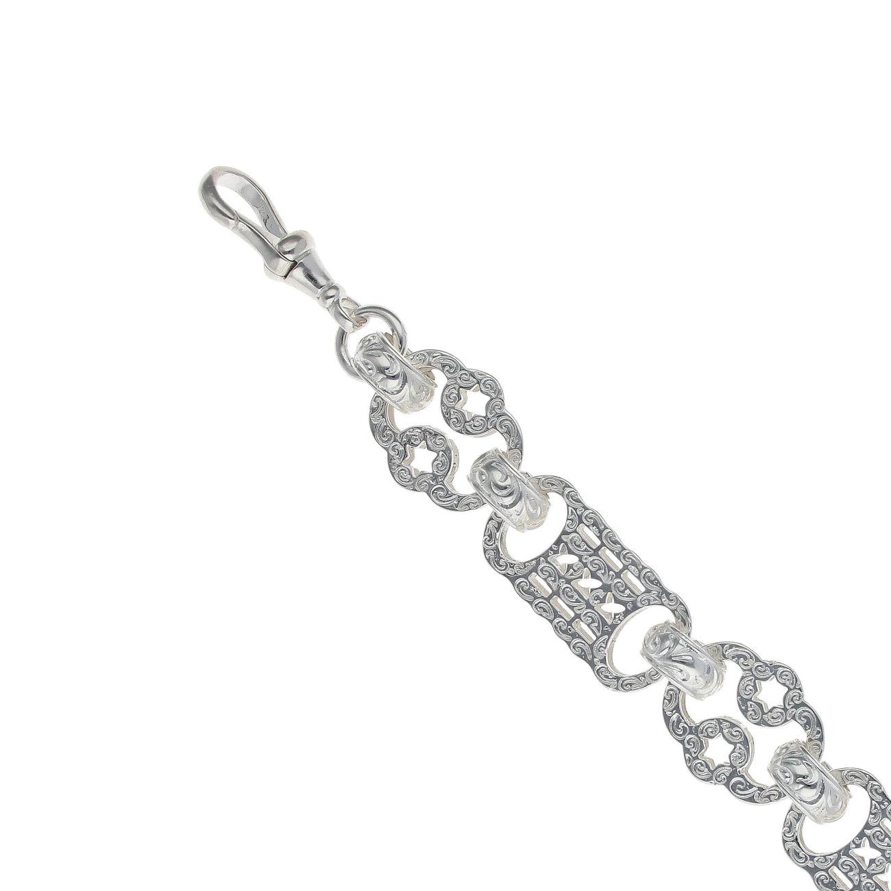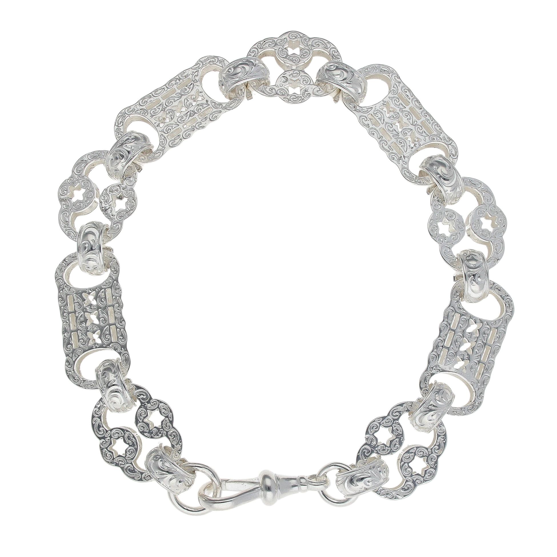 Silver Patterned Stars And Bars Bracelet 9" By Icesia