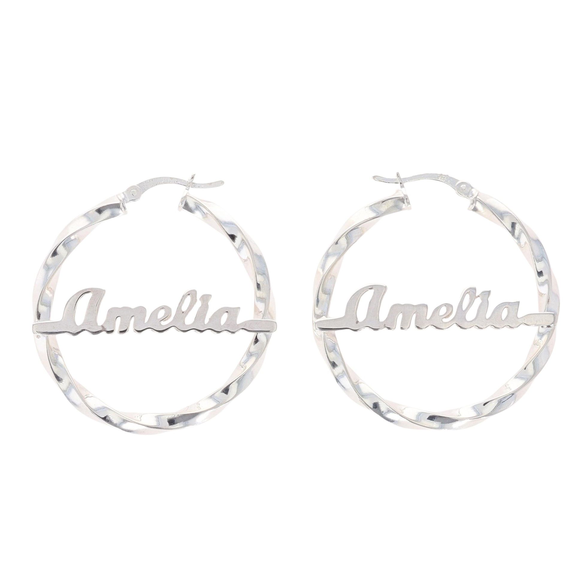 Silver Personalised Nameplate Creole Earrings