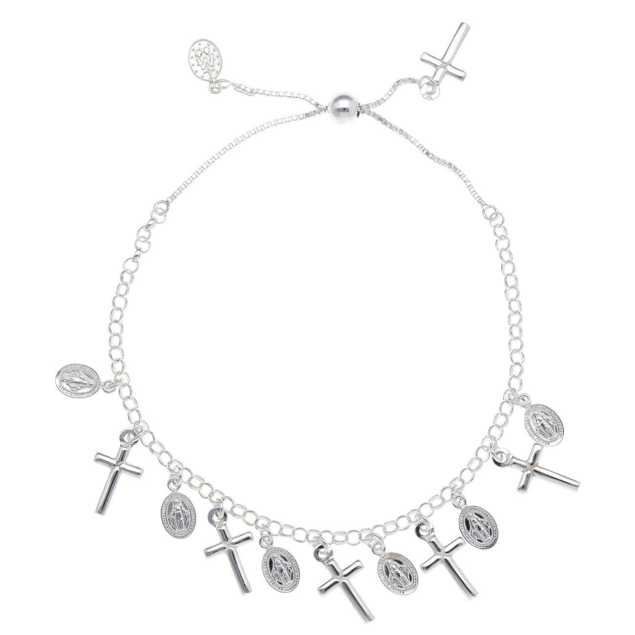 Silver Rosary Bead Style Toggle Bracelet By Icesia