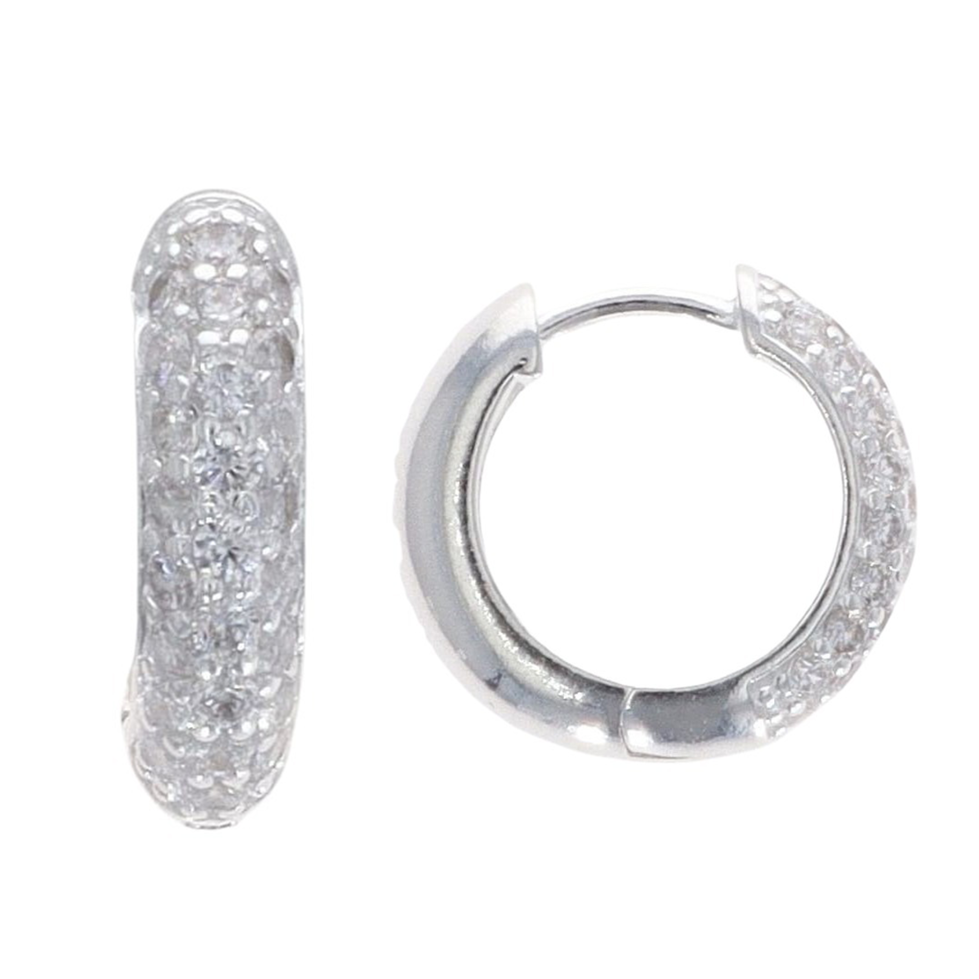 Silver Stone Set Chunky Huggies Hoop Earrings By Icesia