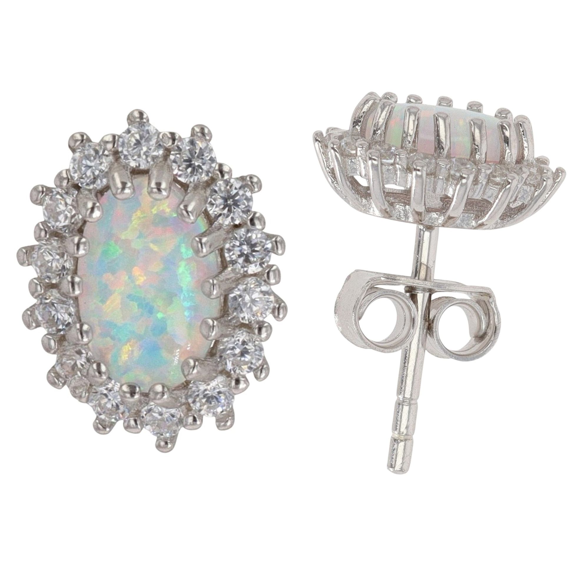 Silver Synthetic Opal And Cubic Zirconia Cluster Stud Earrings By Icesia
