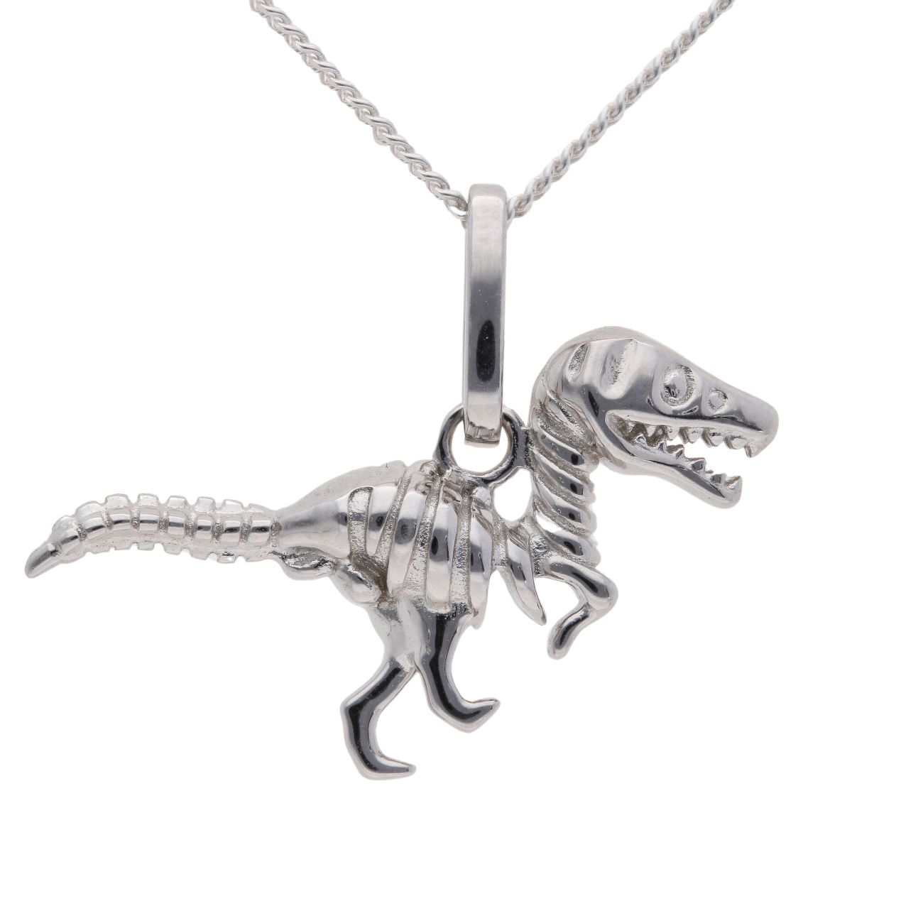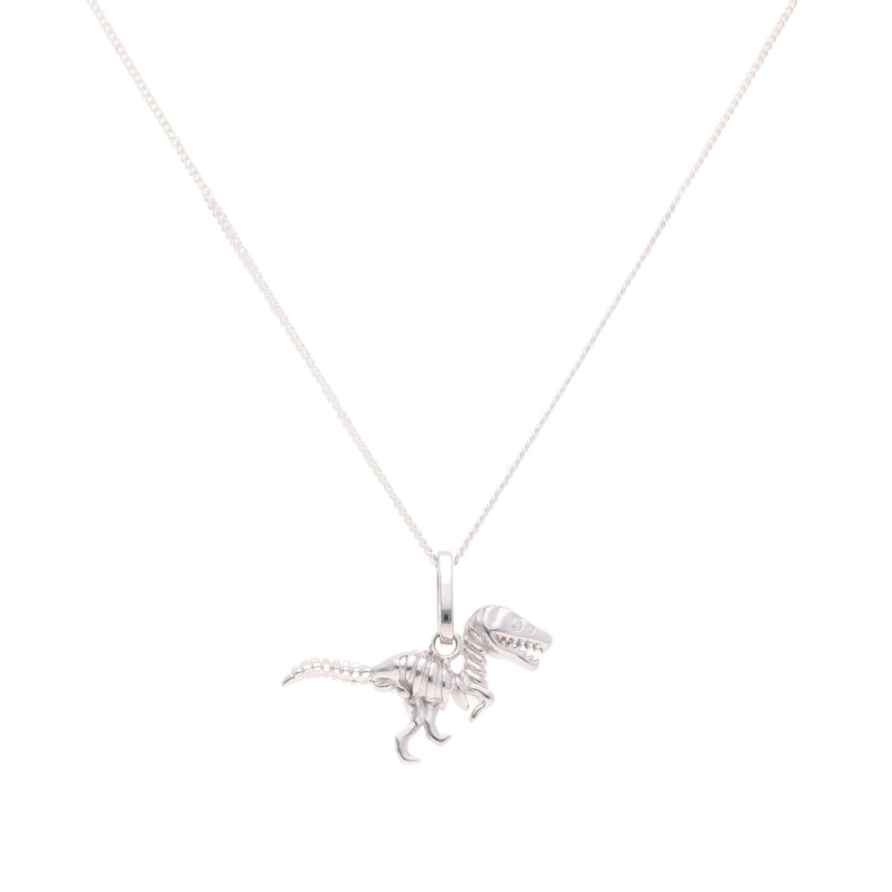 Silver T-Rex Skeleton Pendant and Curb Chain 18" by Icesia