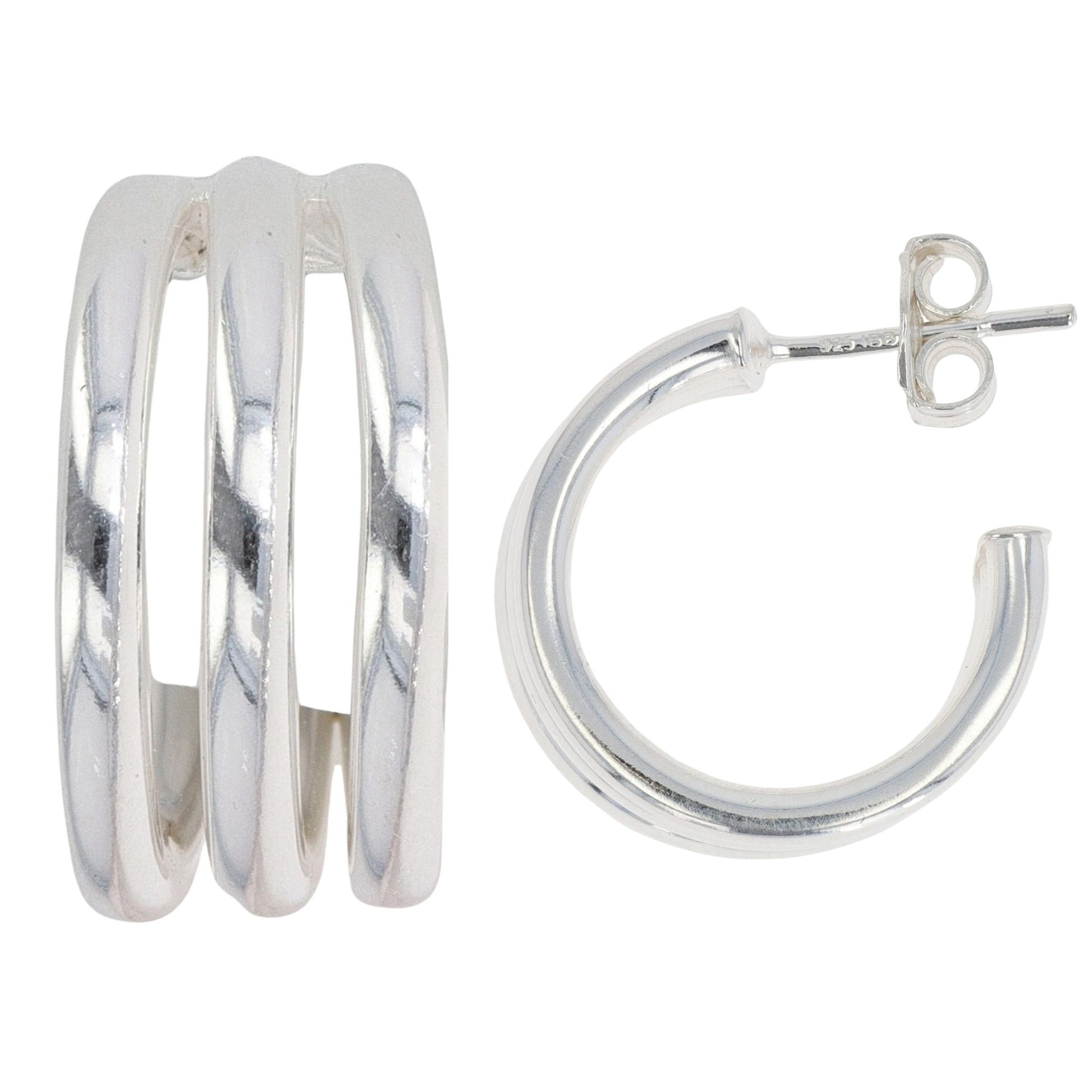 Silver Trio Band Hoop Earrings By Icesia