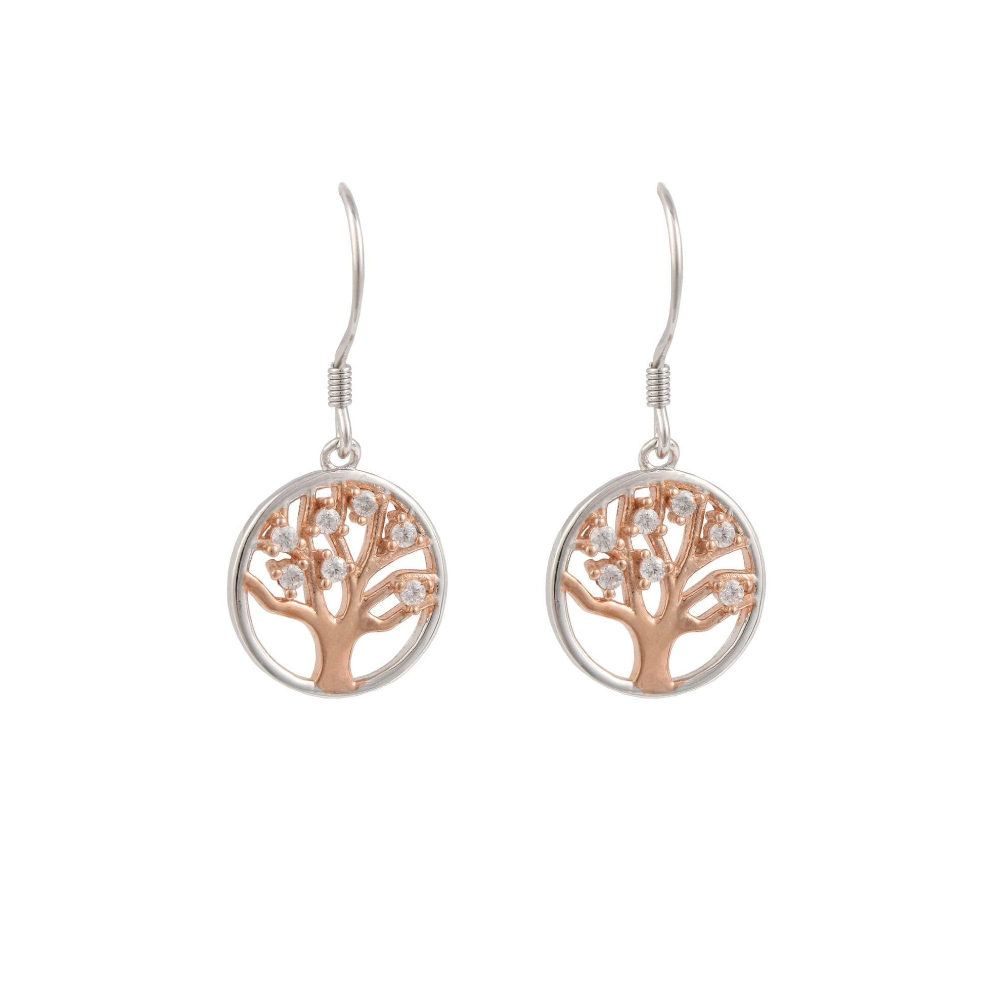 Sterling Silver And Rose Gold Plated Tree Of Life Drop Earrings