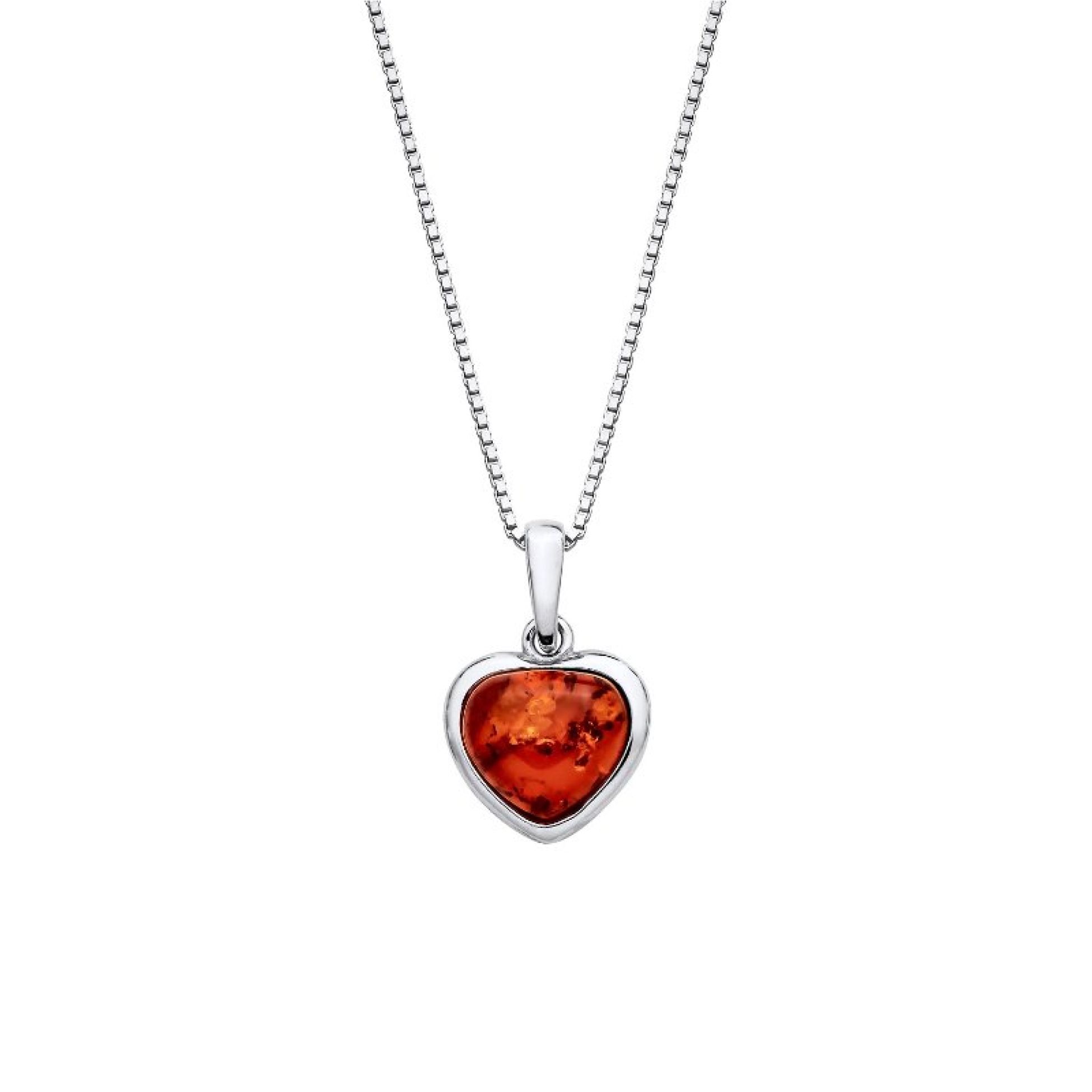 Sterling Silver Baltic Amber Heart Pendant Necklace