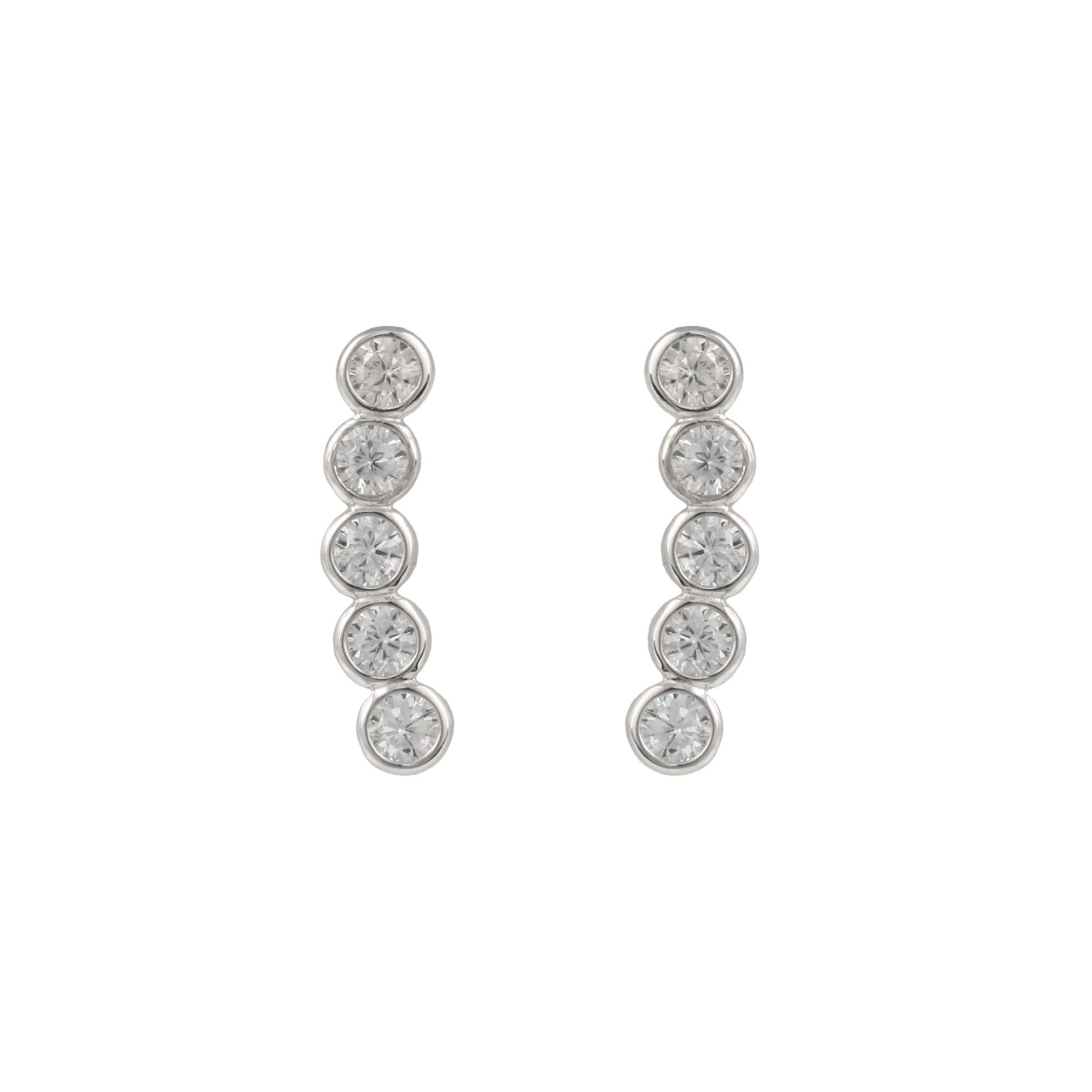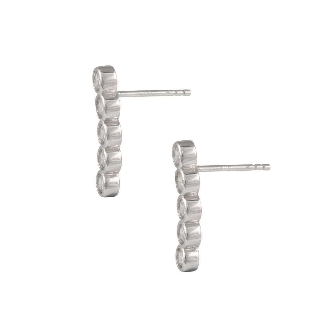 Sterling Silver Bezel Set Cubic Zirconia Drop Stud Earrings