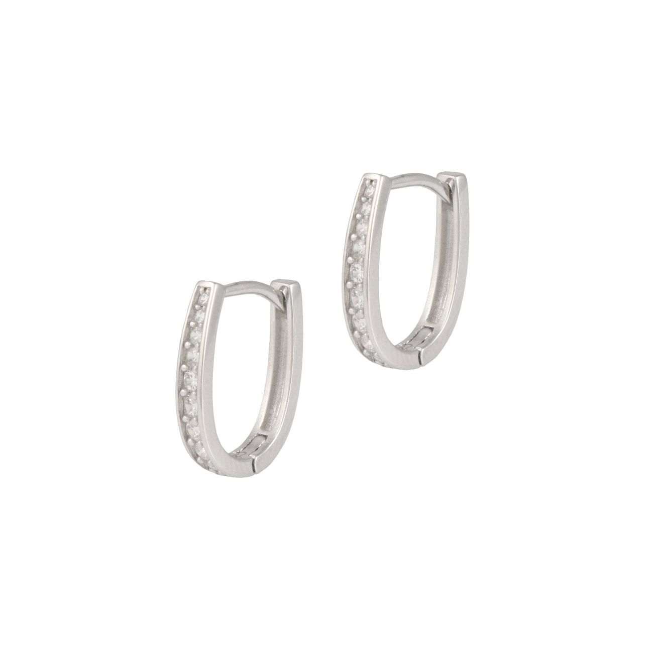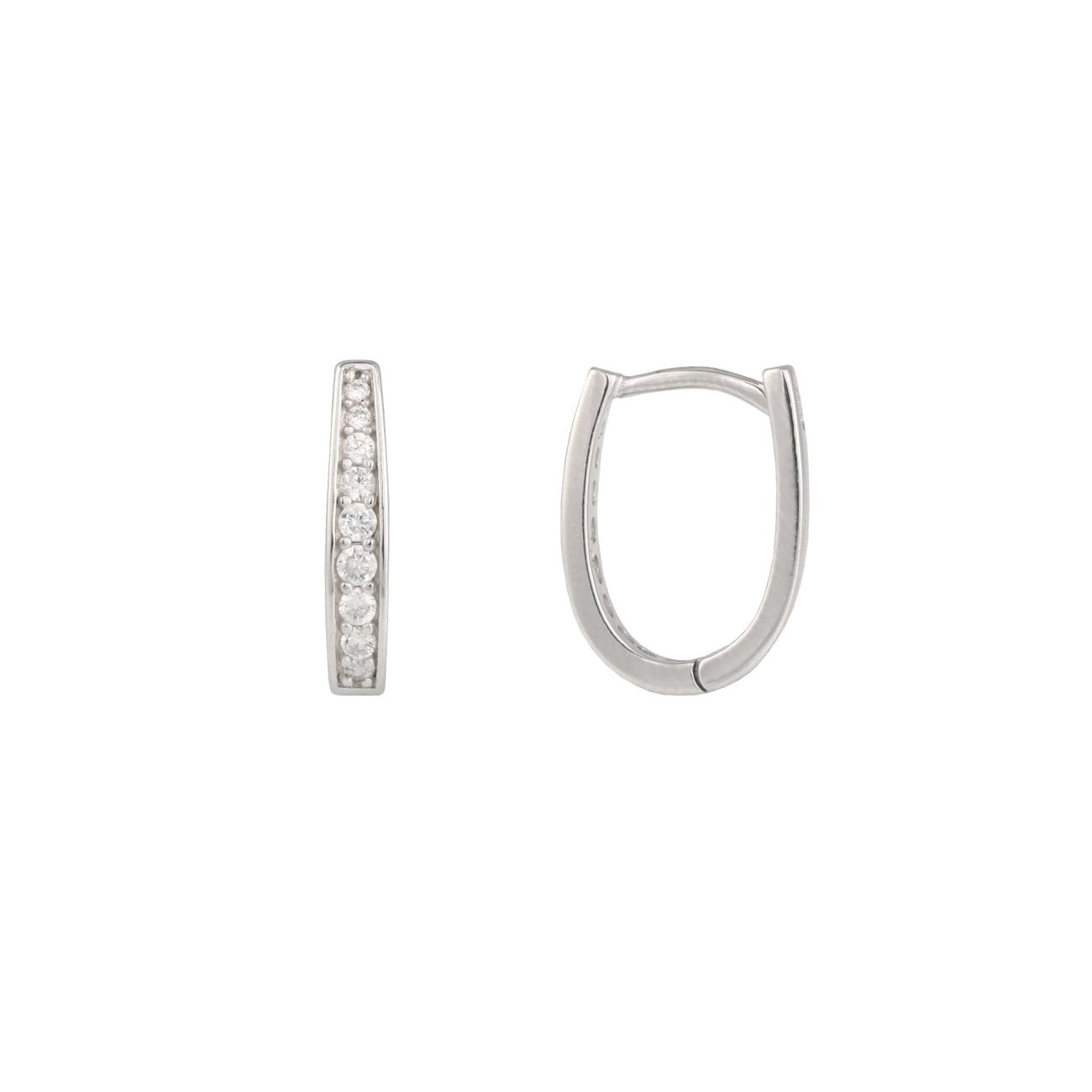 Sterling Silver Channel Set Cubic Zirconia Oval Huggie Hoop Earrings