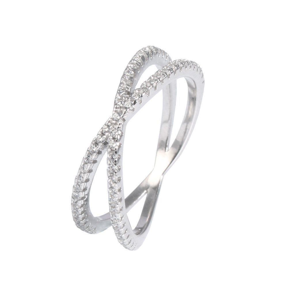 Sterling Silver Criss-Cross Cage Cubic Zirconia Ring