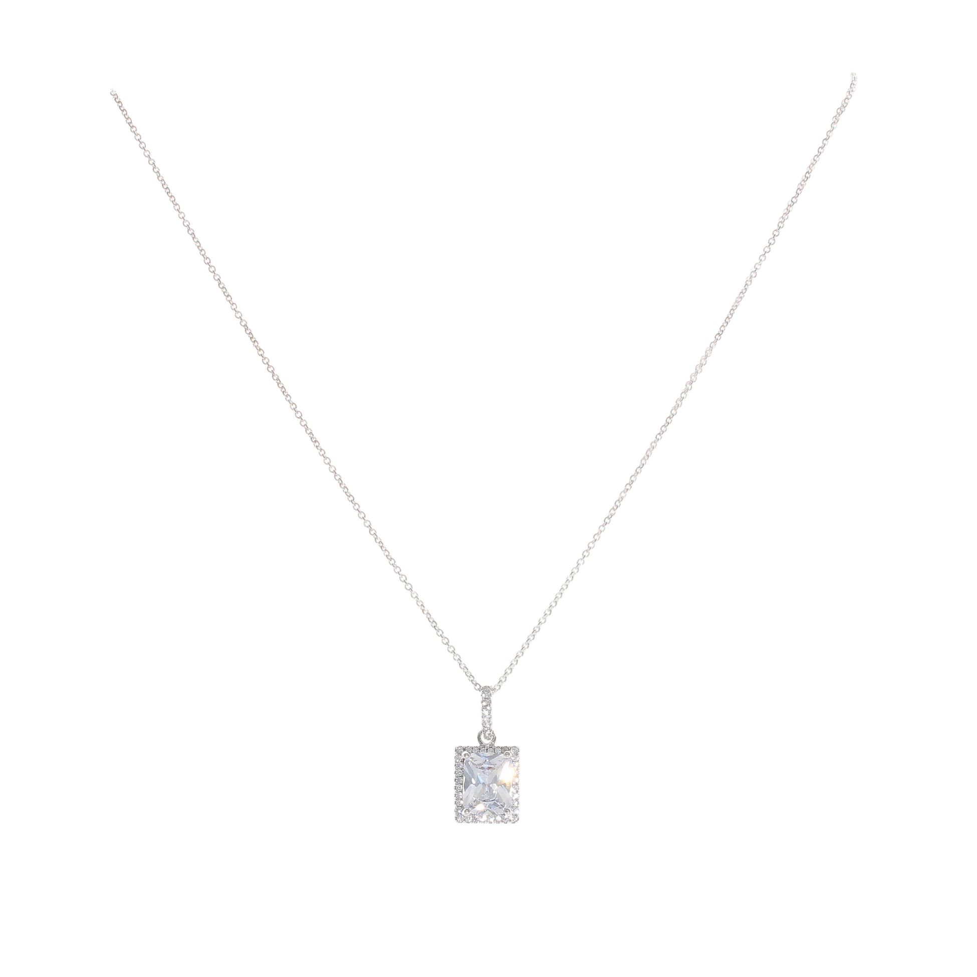 Sterling Silver Cubic Zirconia Rectangular Halo Pendant and Chain 18" by Icesia