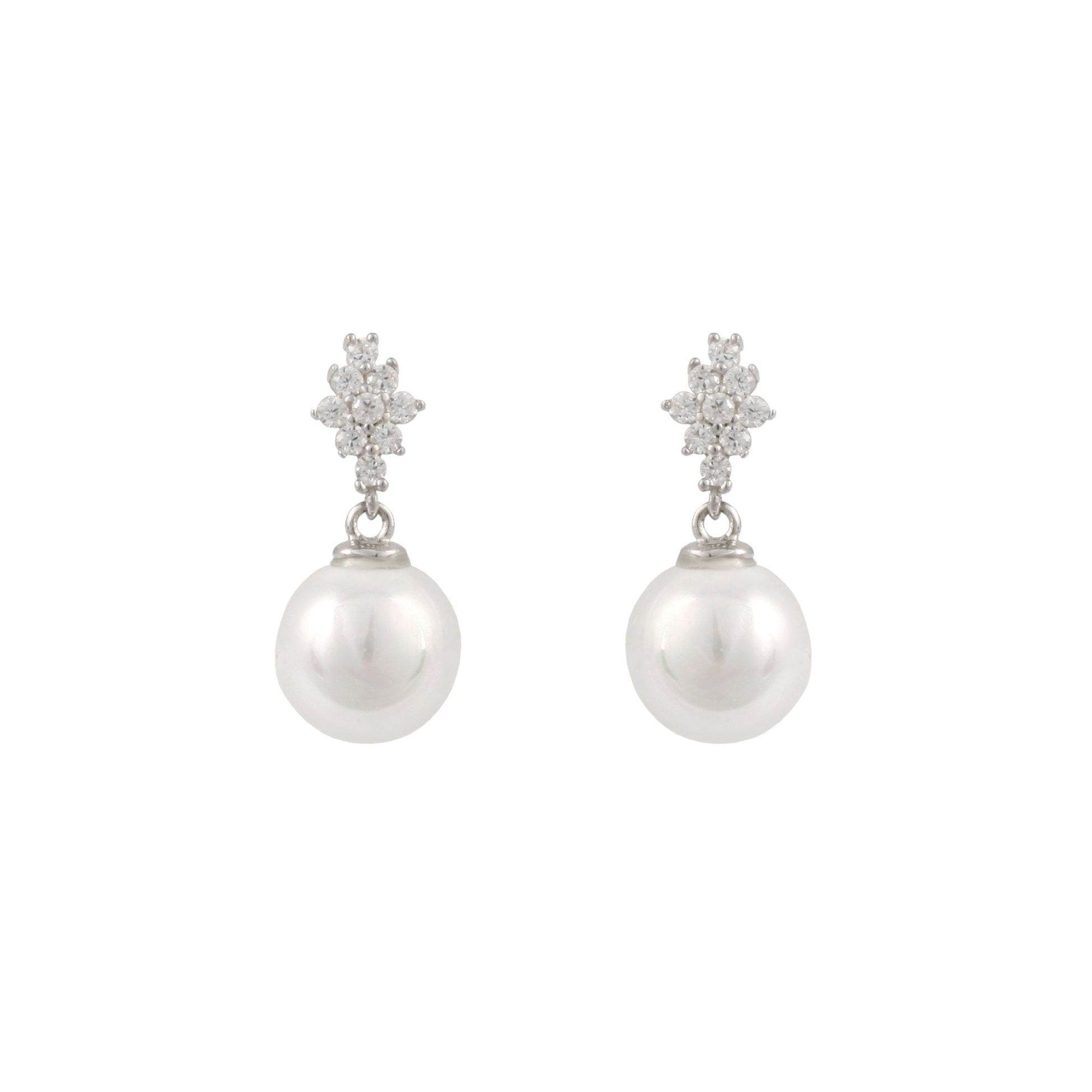 Sterling Silver Cultured Freshwater Pearl And Cubic Zirconia Stud Earrings