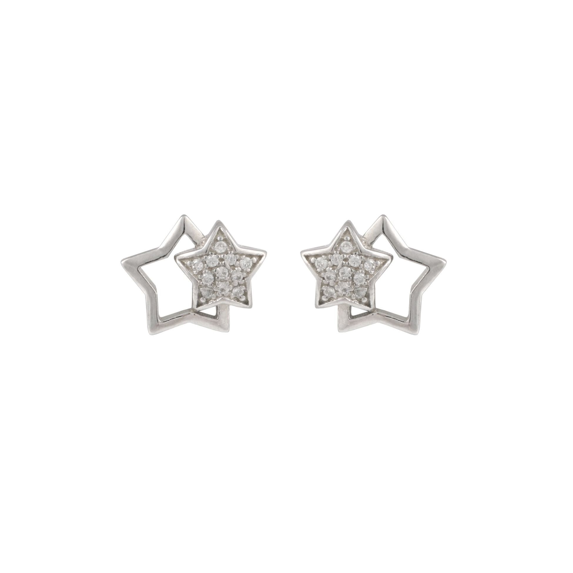 Sterling Silver Double Star Pavé Cubic Zirconia Stud Earrings