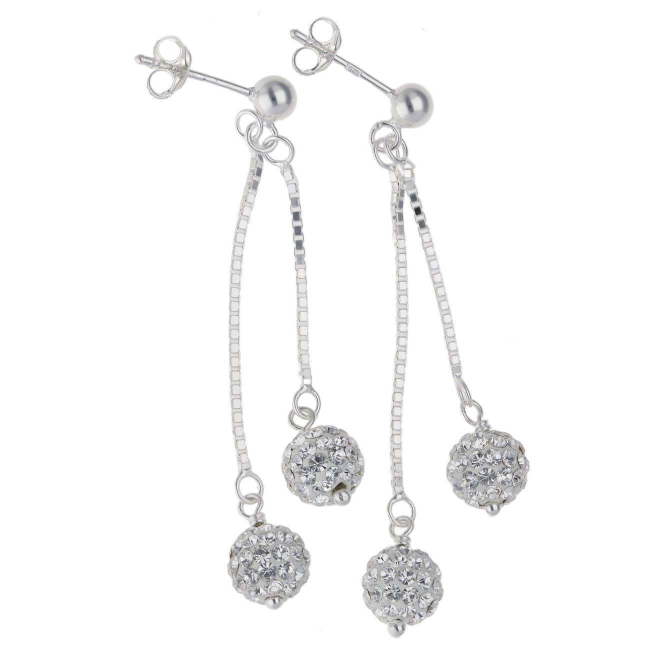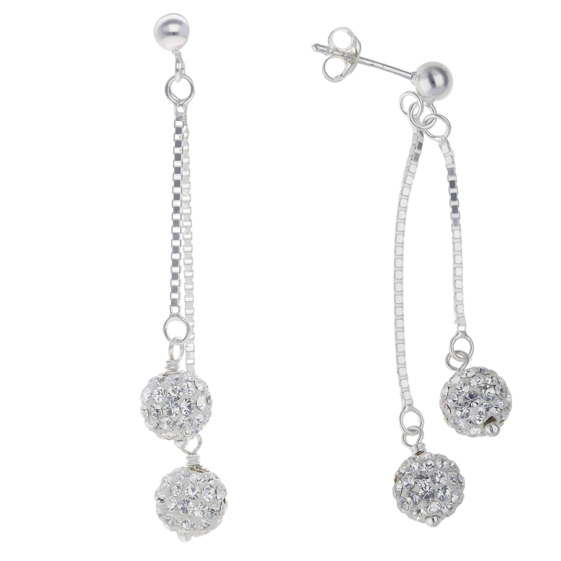 Sterling Silver Duo Crystal Ball Drop Earrings by Icesia