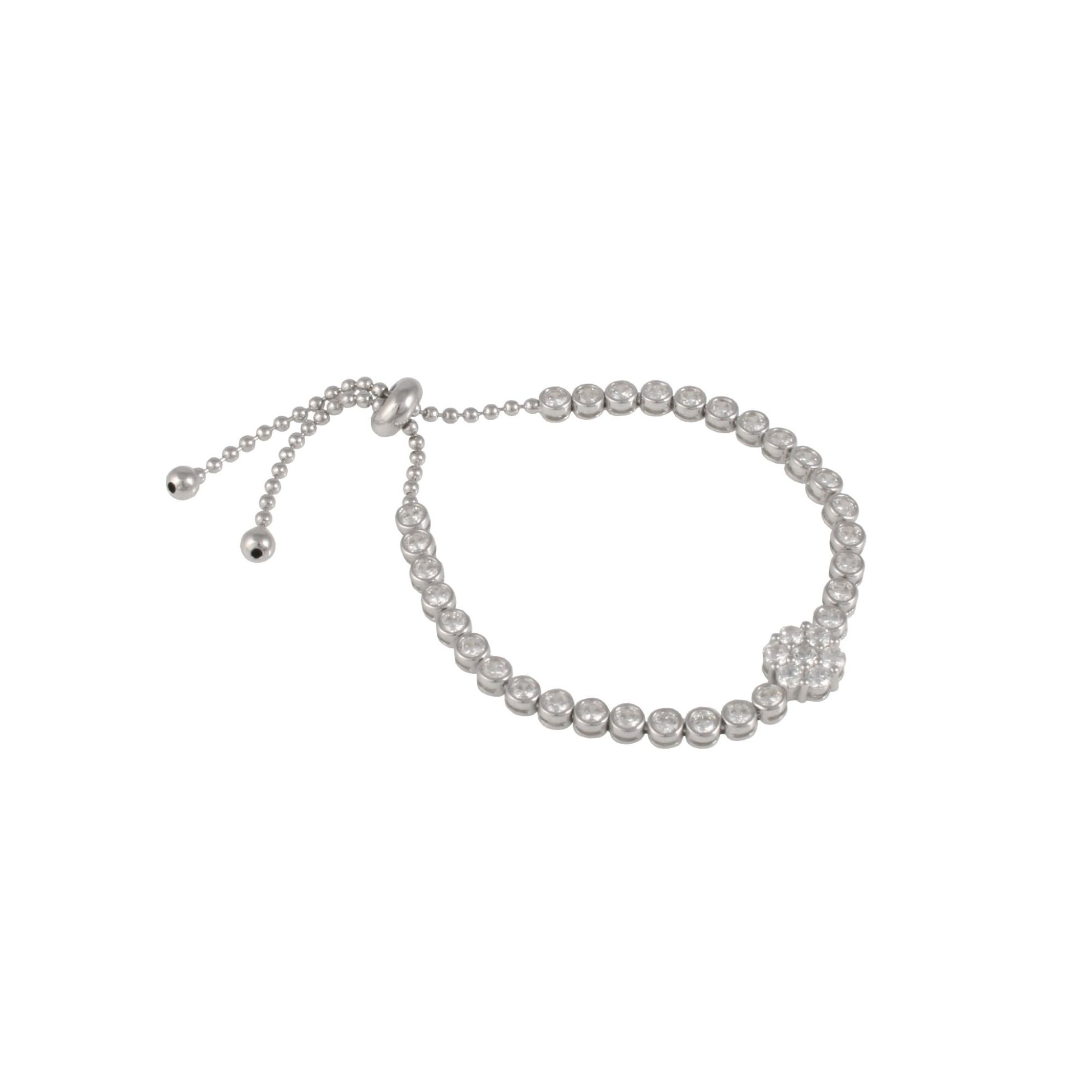 Sterling Silver Floral Cubic Zirconia Toggle Bracelet