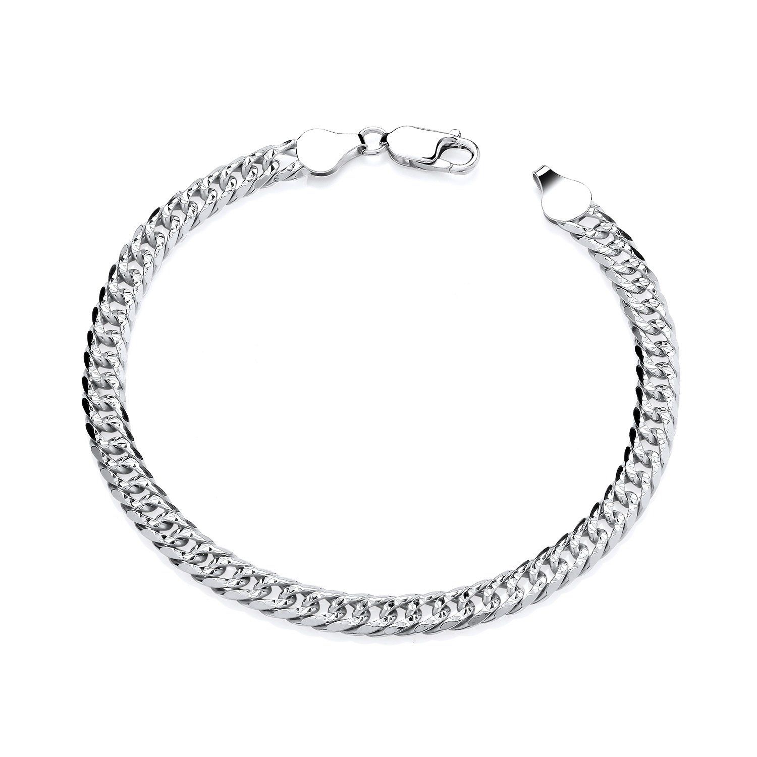 Sterling Silver Men's Diamond Cut Double Curb 8.5" Bracelet