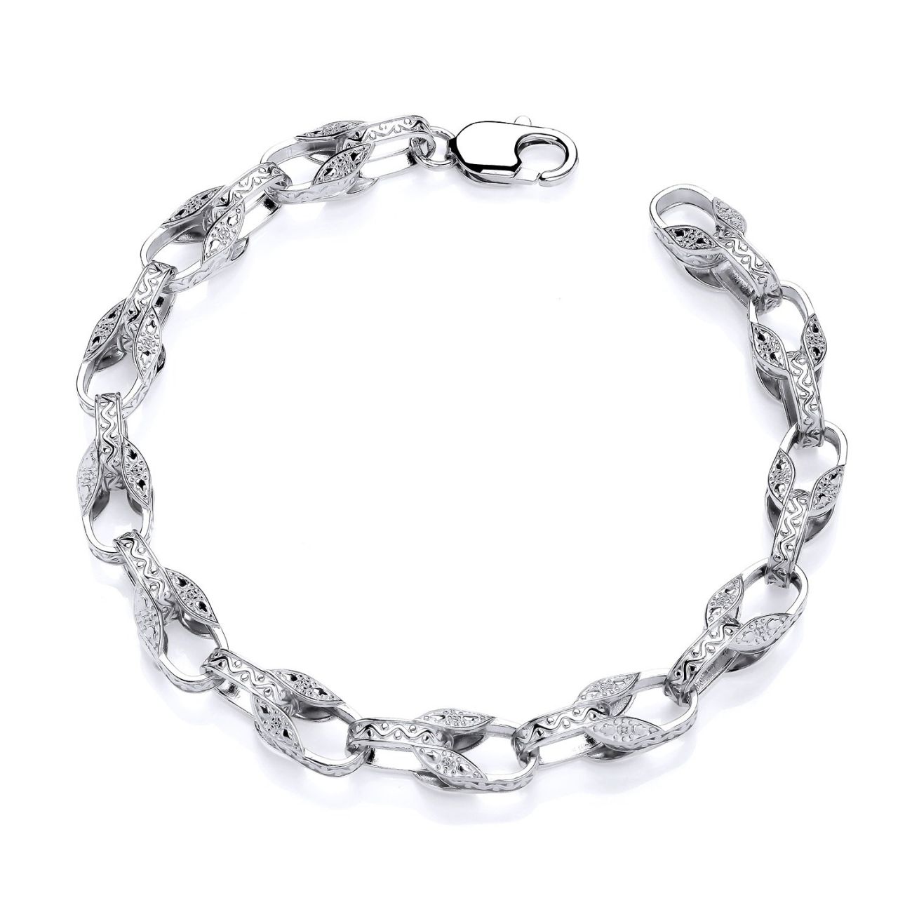 Sterling Silver Men's Patterned Tulip 9'' Bracelet