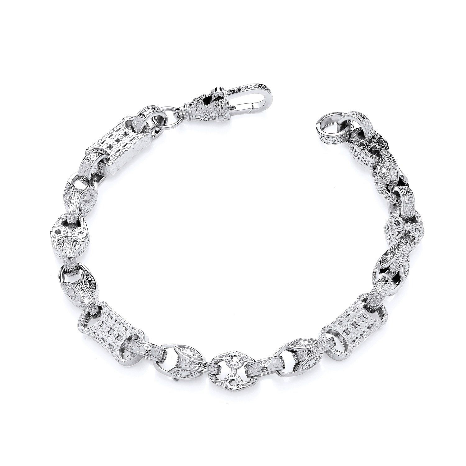 Sterling Silver Men's Patterned Tulip Star & Bar Belcher 9" Bracelet
