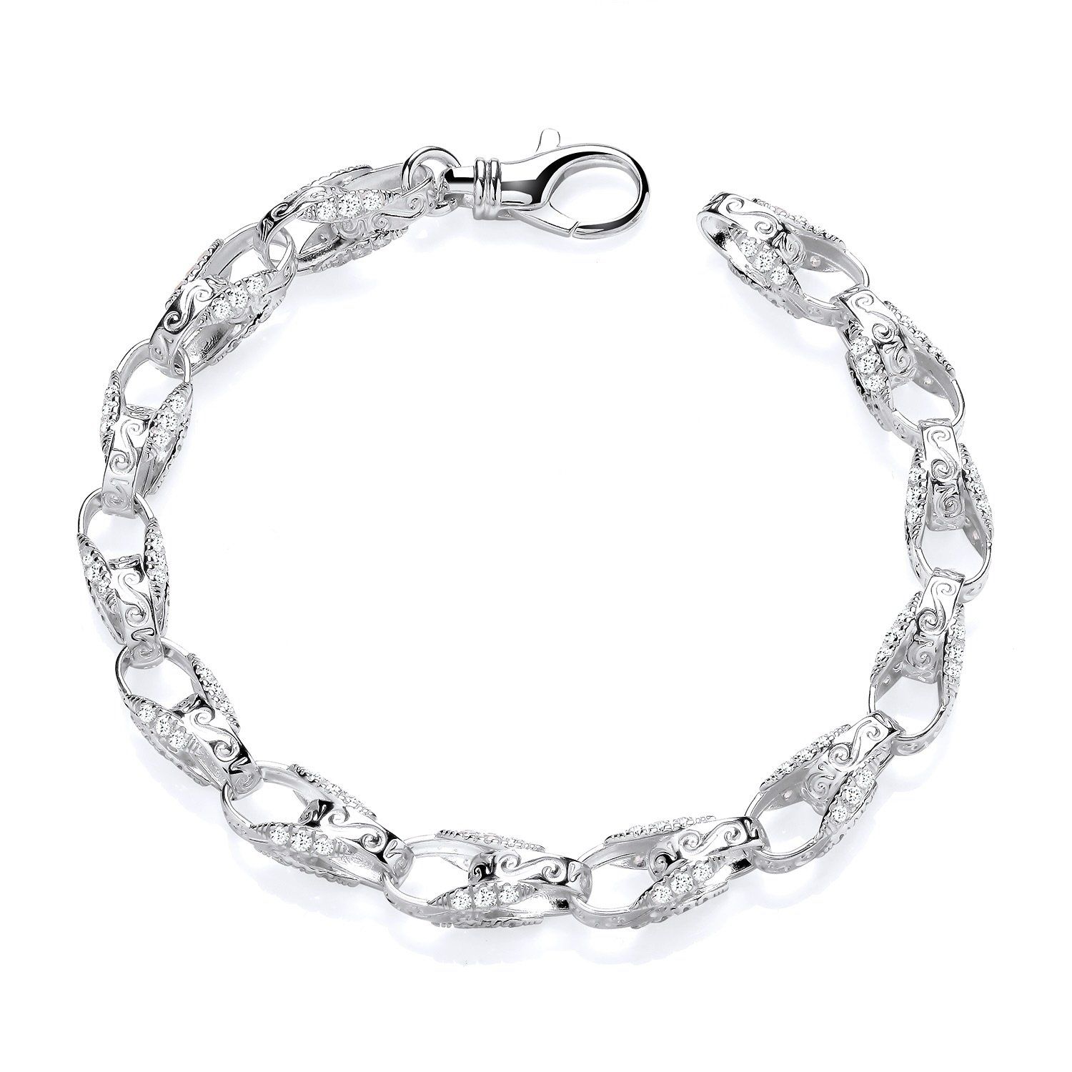Sterling Silver Men's Stone Set Patterned Tulip 9'' Bracelet