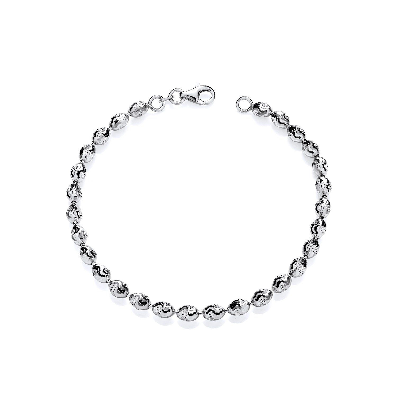 Sterling Silver Rhodium Plated Diamond Cut Oval 7.5" Ladies Bracelet
