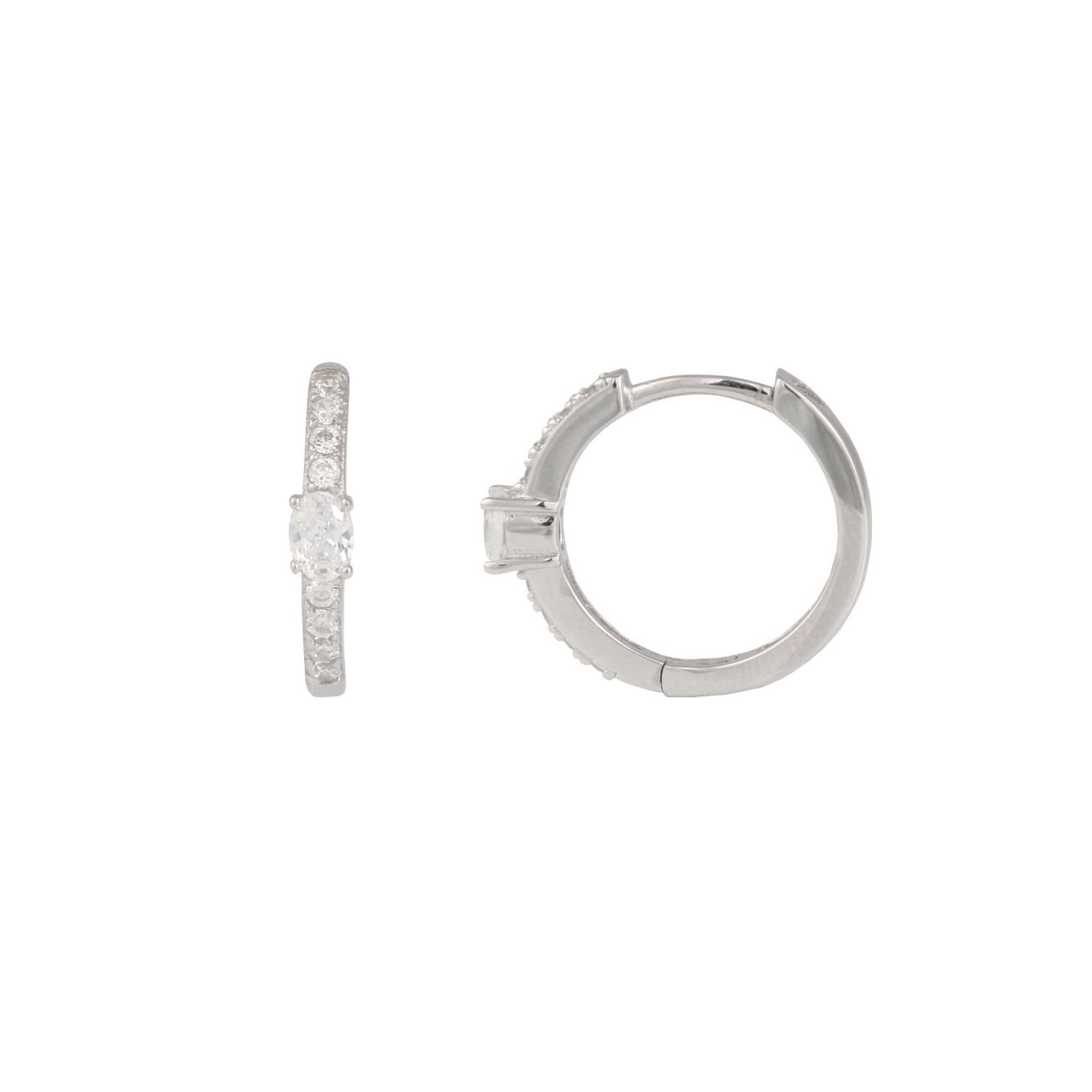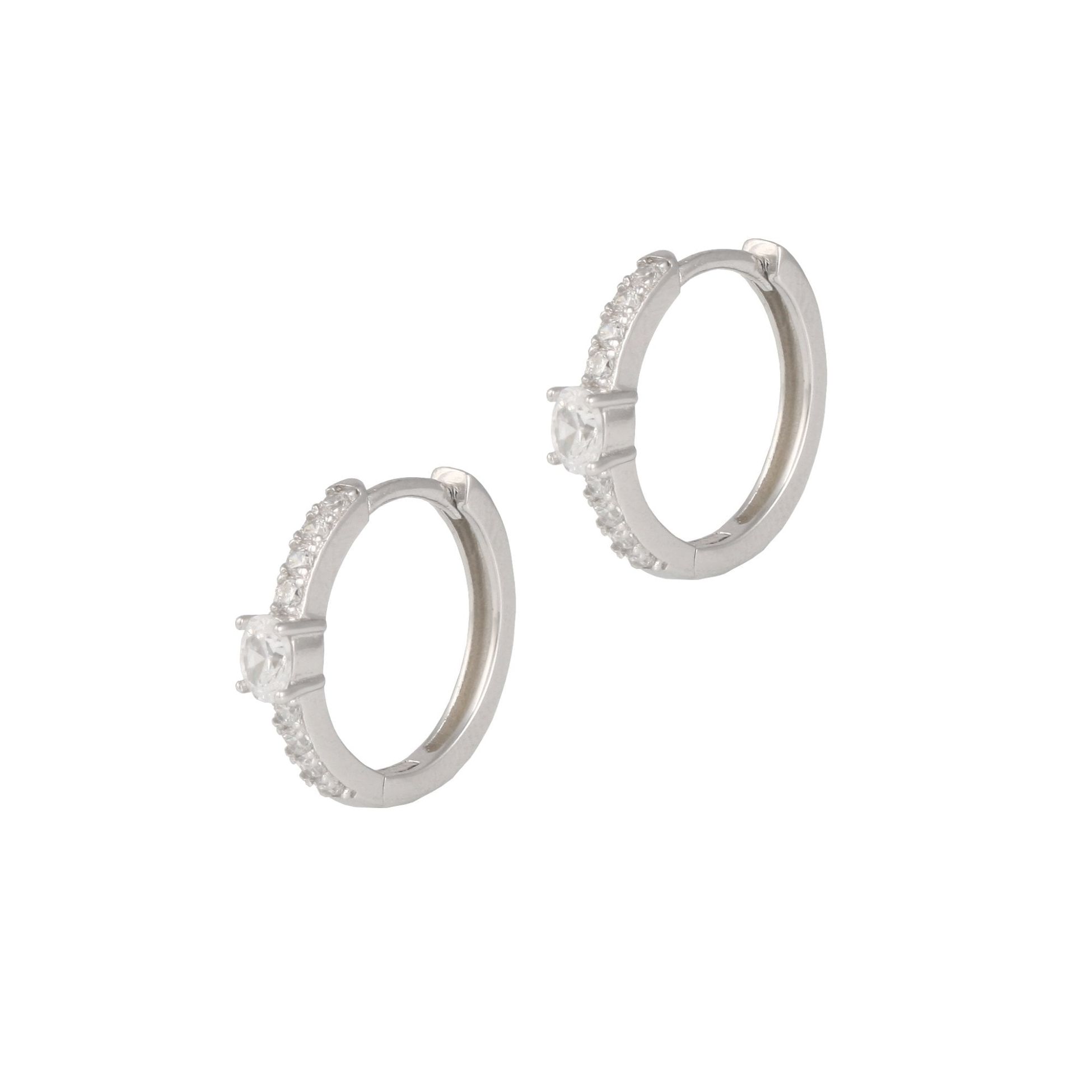 Sterling Silver Single Row Cubic Zirconia Huggie Hoop Earrings