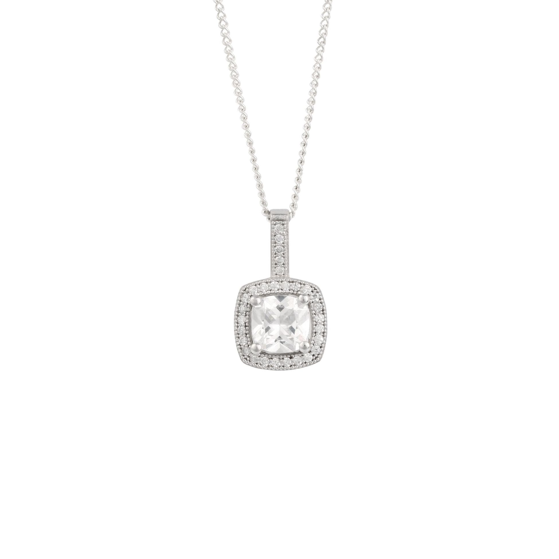 Sterling Silver Square Cubic Zirconia Halo Pendant