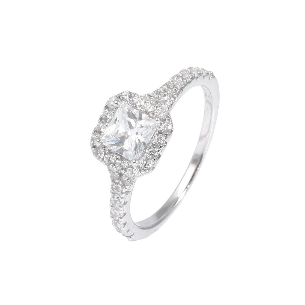 Sterling Silver Square Cubic Zirconia Halo Ring