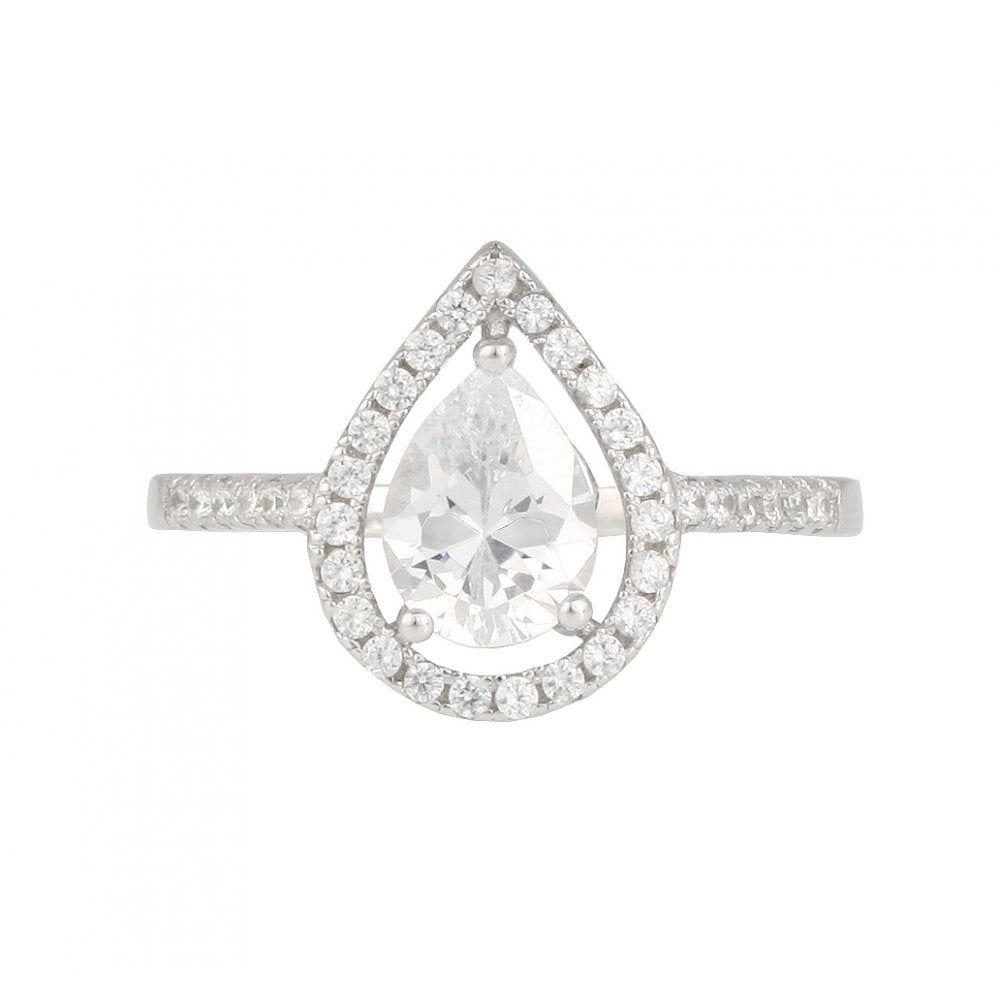 Sterling Silver Teardrop Halo Cubic Zirconia Ring