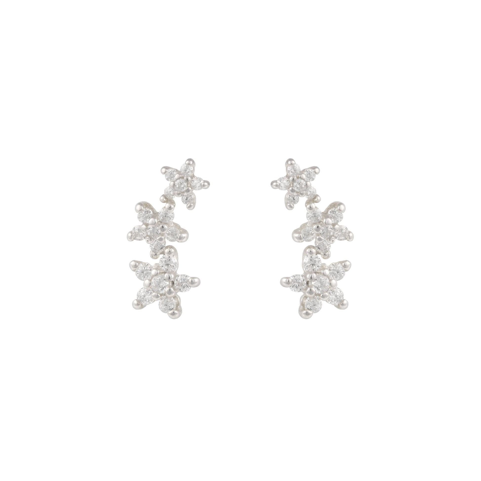 Sterling Silver Triple Star Cubic Zirconia Climber Stud Earrings