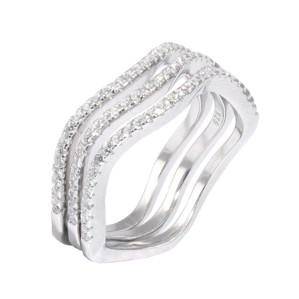 Sterling Silver Wavy Micro Set Cubic Zirconia Stacking Rings