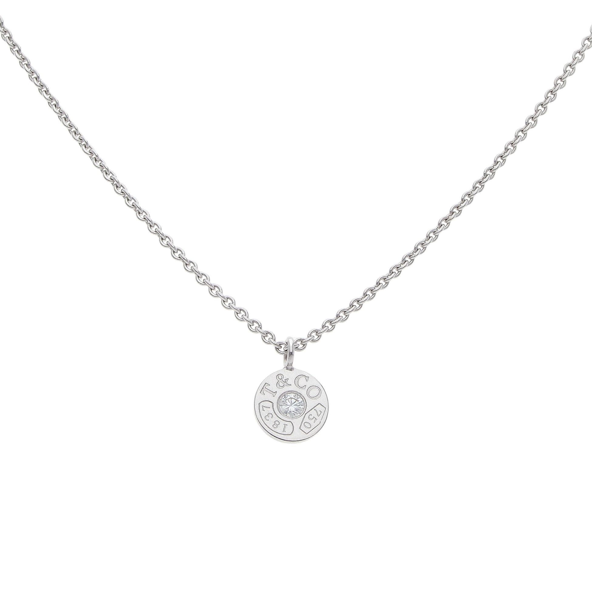 - Tiffany & Co. 18ct White Gold 0.05ct Diamond Solitaire Pendant and Chain 16"