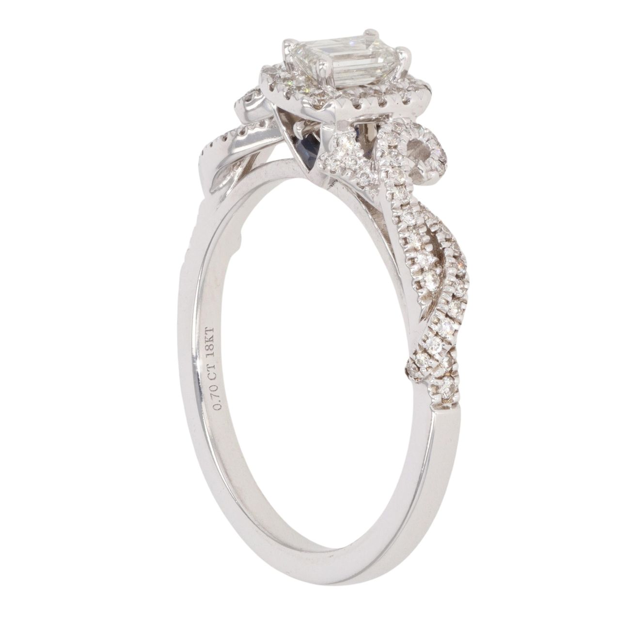 Vera Wang 18ct White Gold 0.70ct Emerald and Brilliant Cut Diamond Cluster Ring