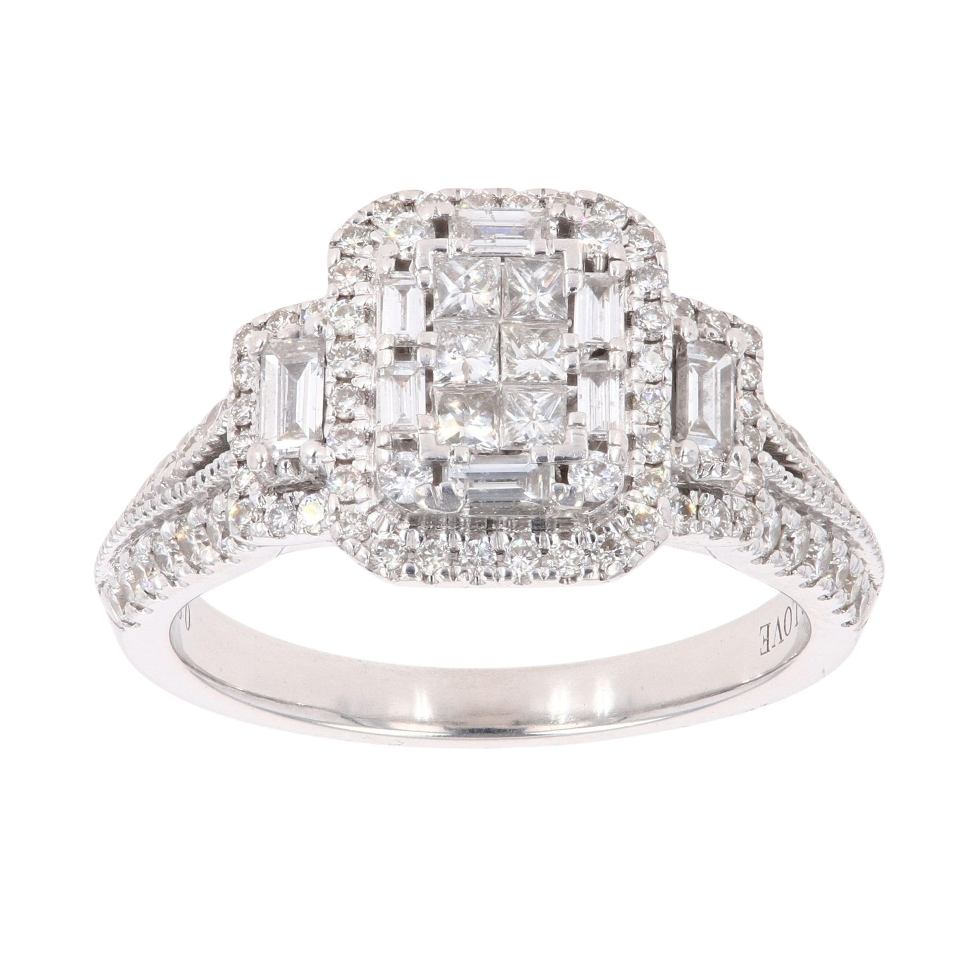 Vera Wang 18ct White Gold 0.95ct Princess Baguette and Brilliant Cut Diamond Cluster Ring