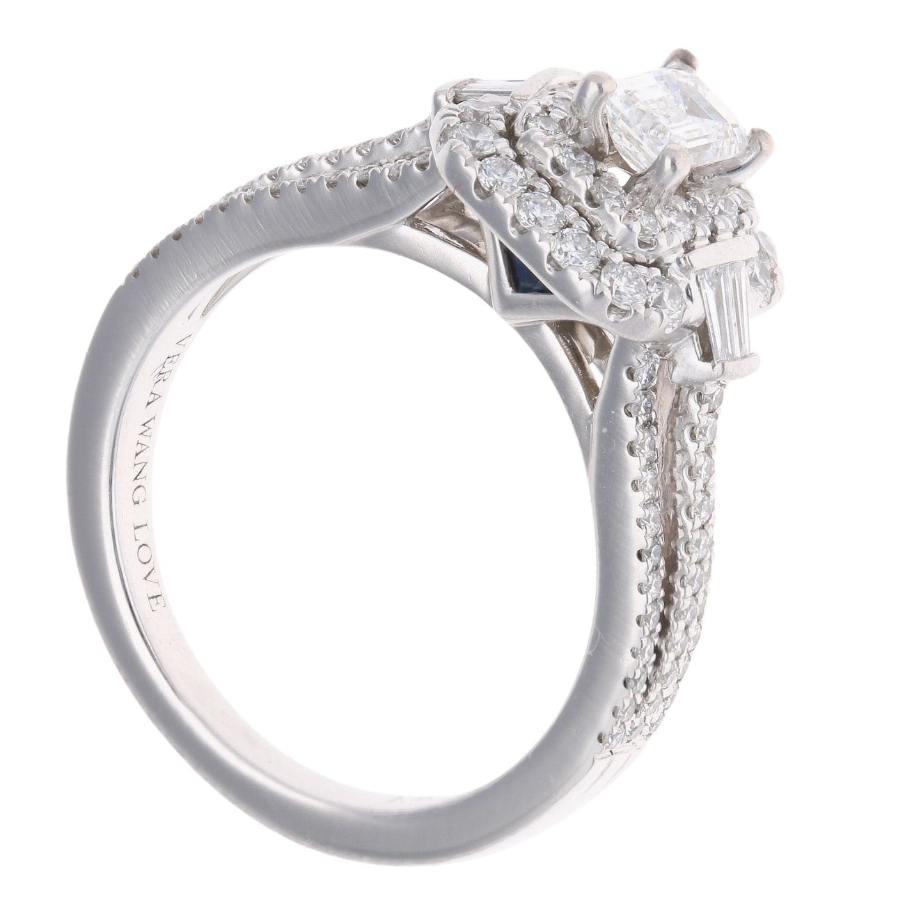 Vera Wang Platinum 1.20ct Emerald Baguette and Brilliant Cut Diamond Cluster Ring